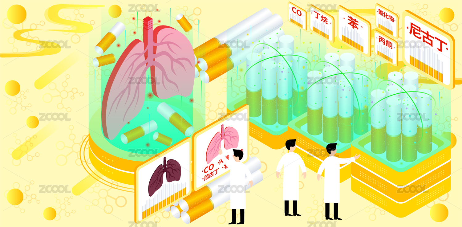 無(wú)煙日醫(yī)生分析香煙有毒物質(zhì)科技風(fēng)矢量插畫