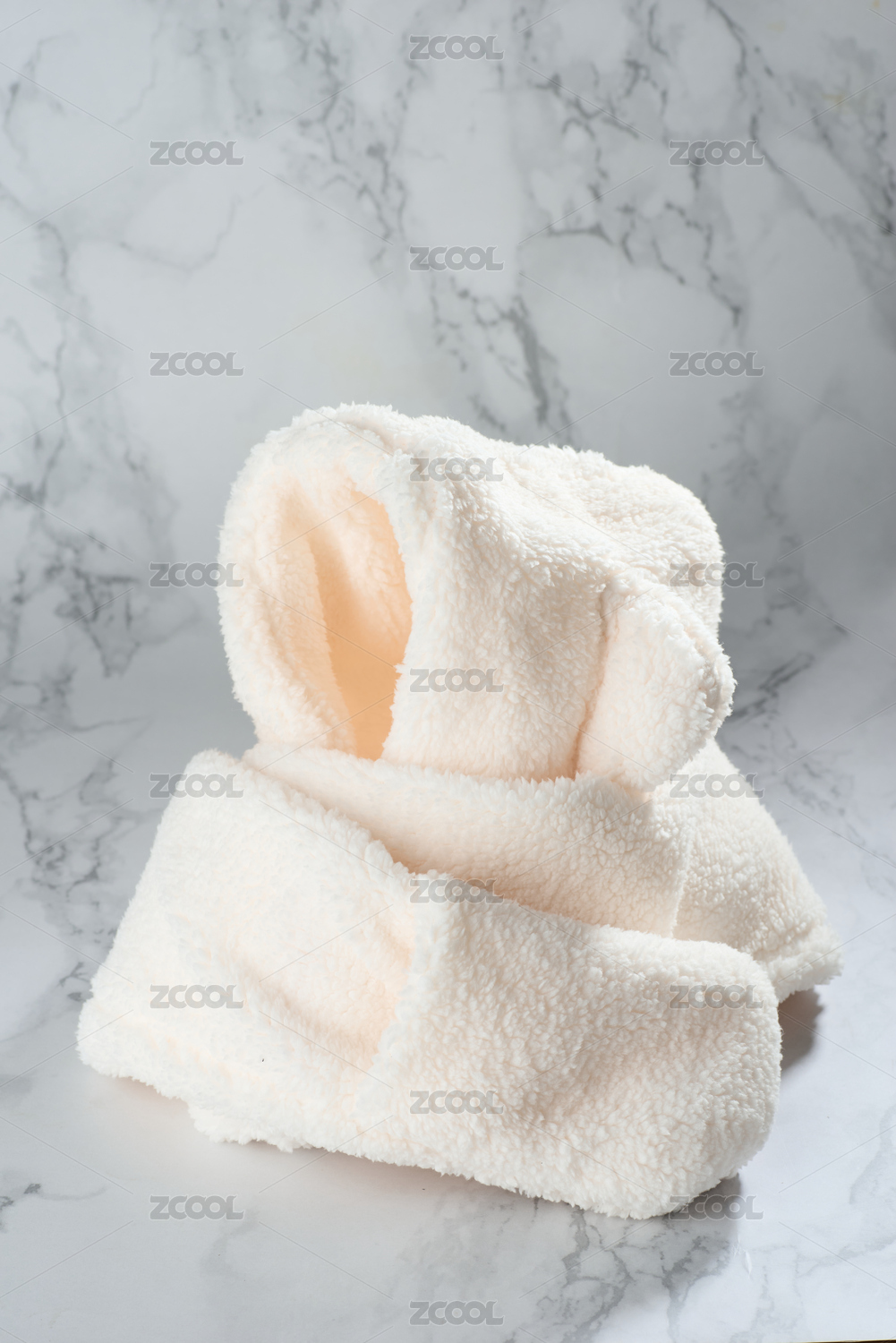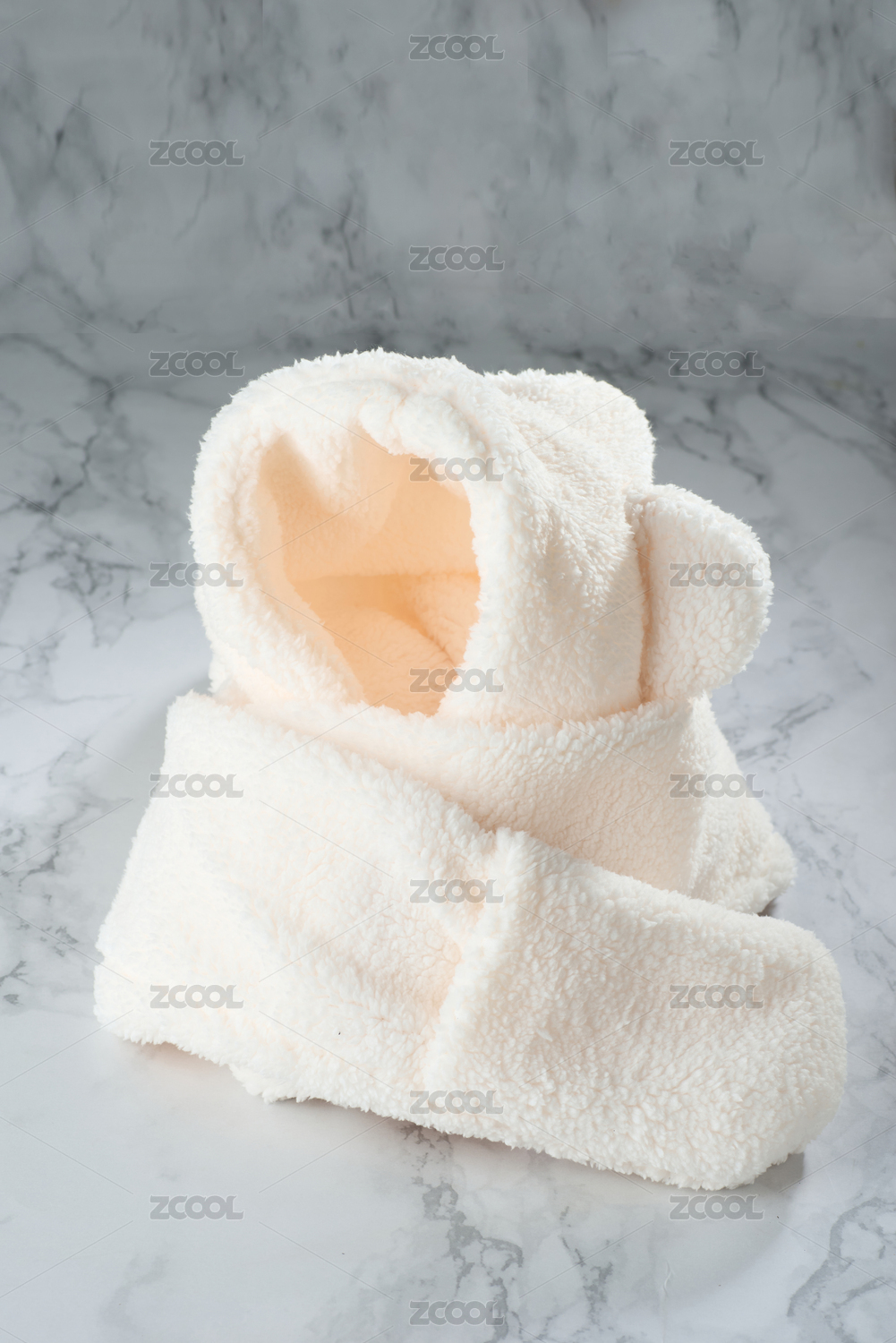 純白背景中的兒童毛絨保暖套頭帽