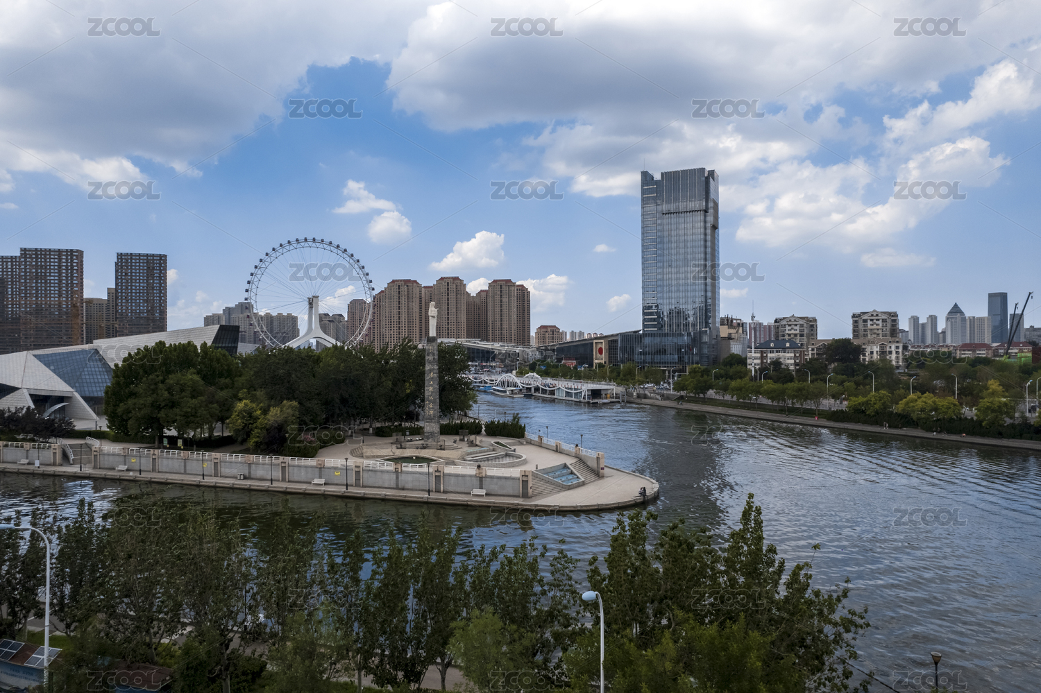 南北運(yùn)河引灤入津海河天津之眼城市風(fēng)光航拍