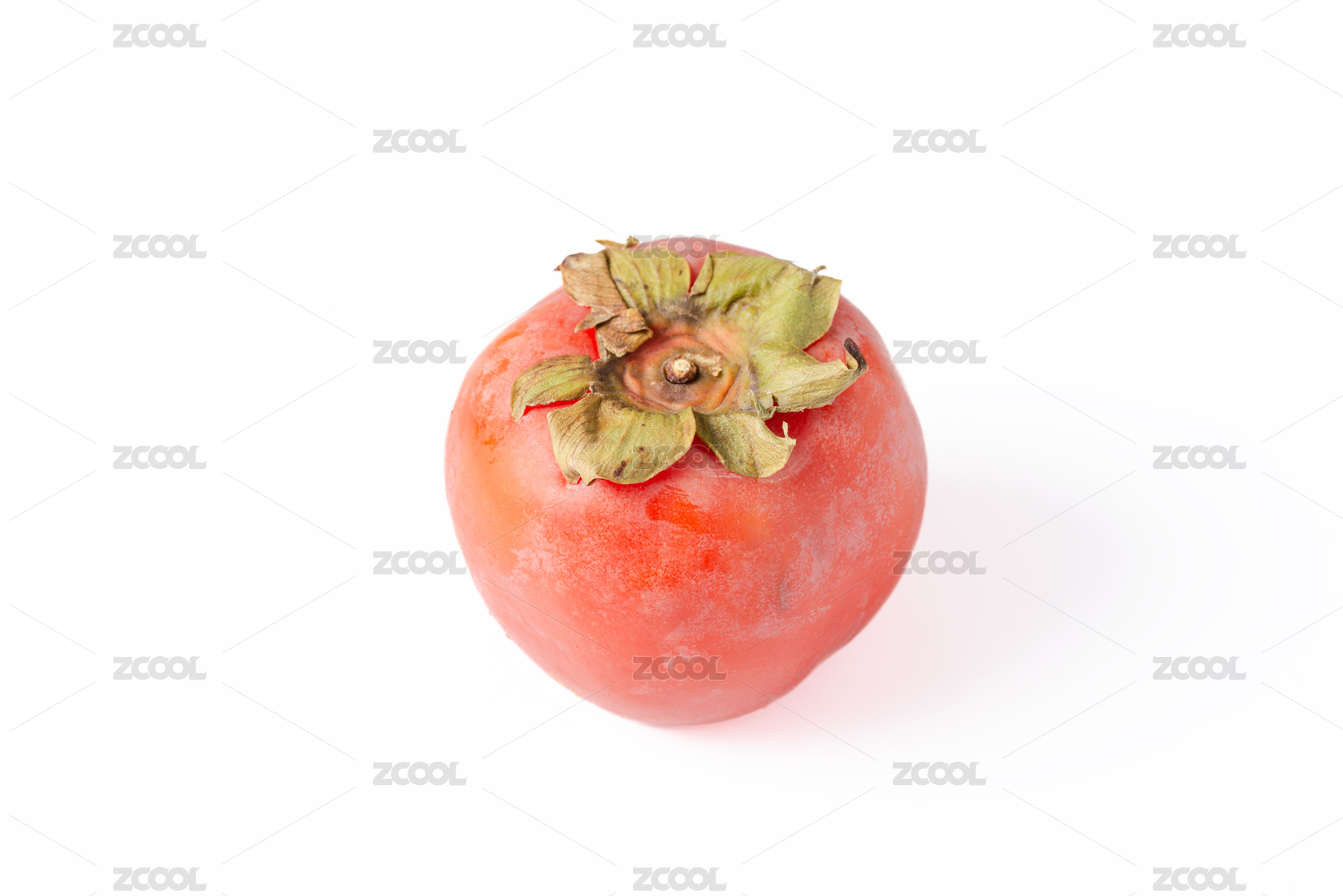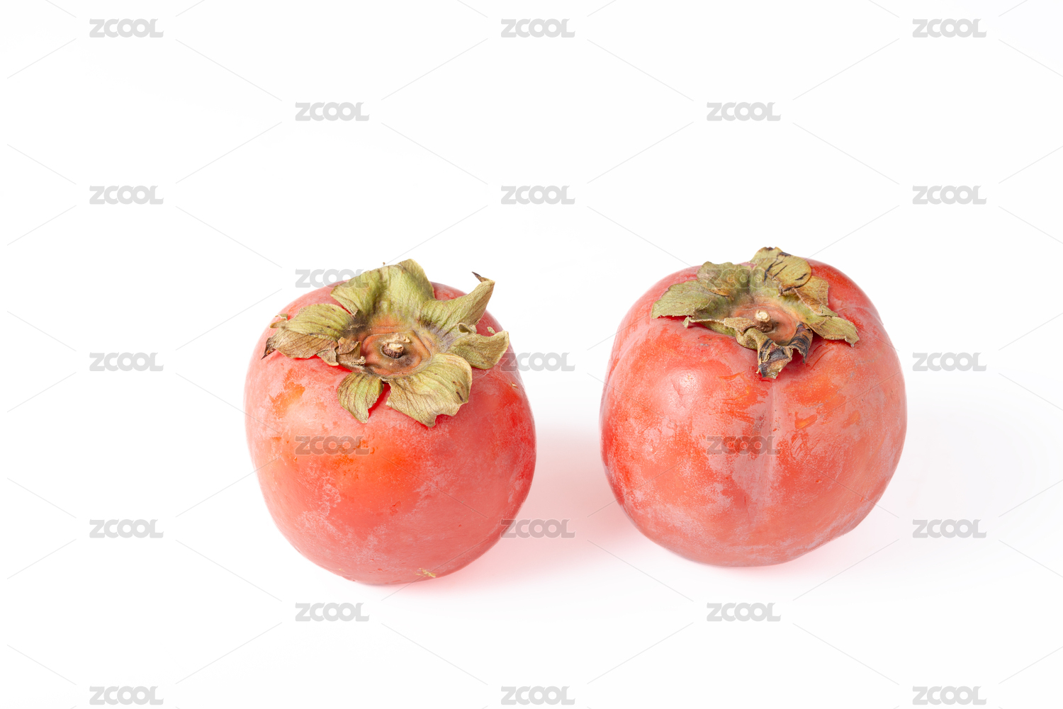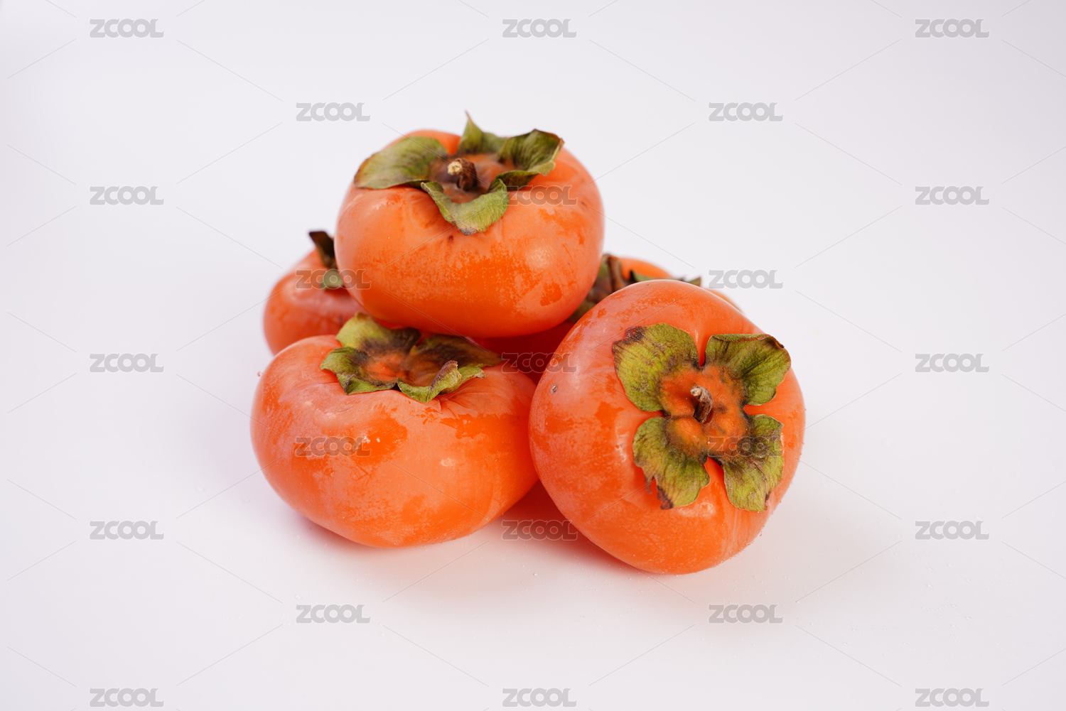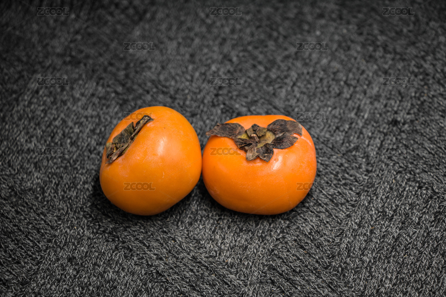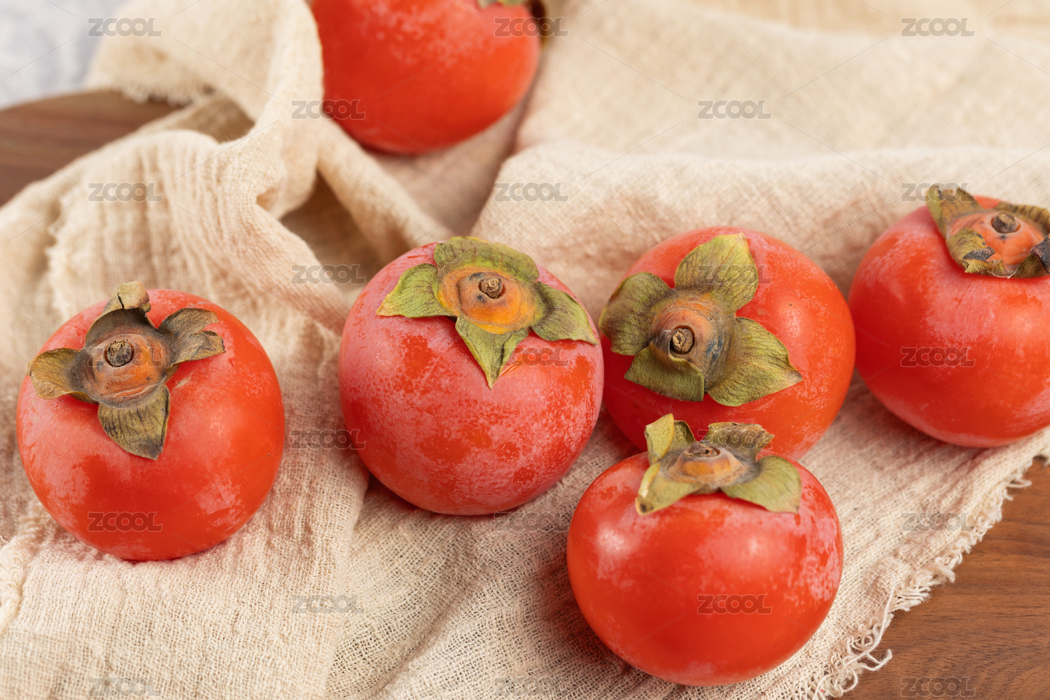 盛開桃花下木桌上放著一筐秋季水果紅柿