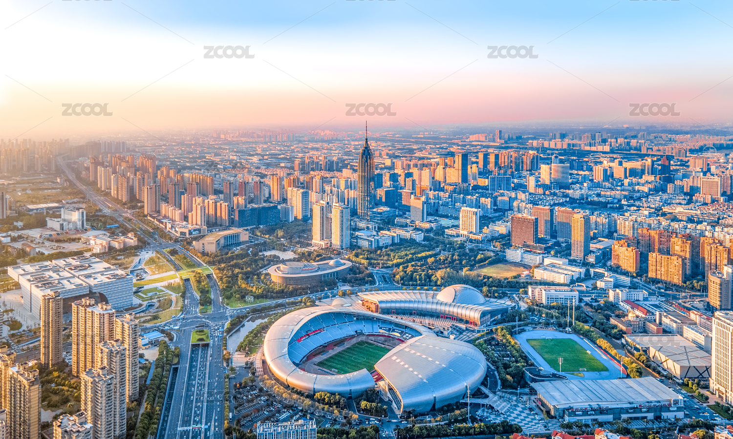 航拍中國江蘇省常州市奧體中心體育館