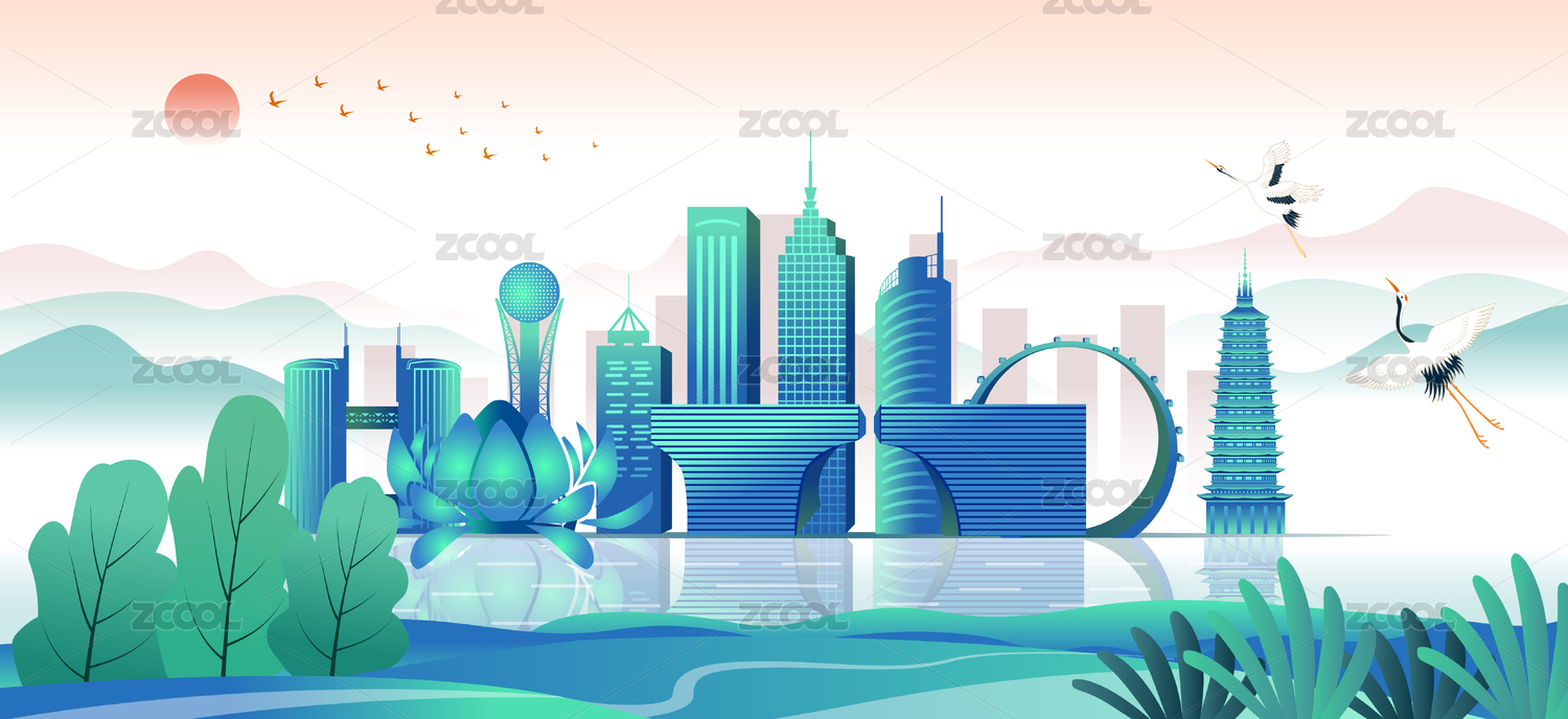 中國江蘇常州市商務(wù)科技城市彩色插畫