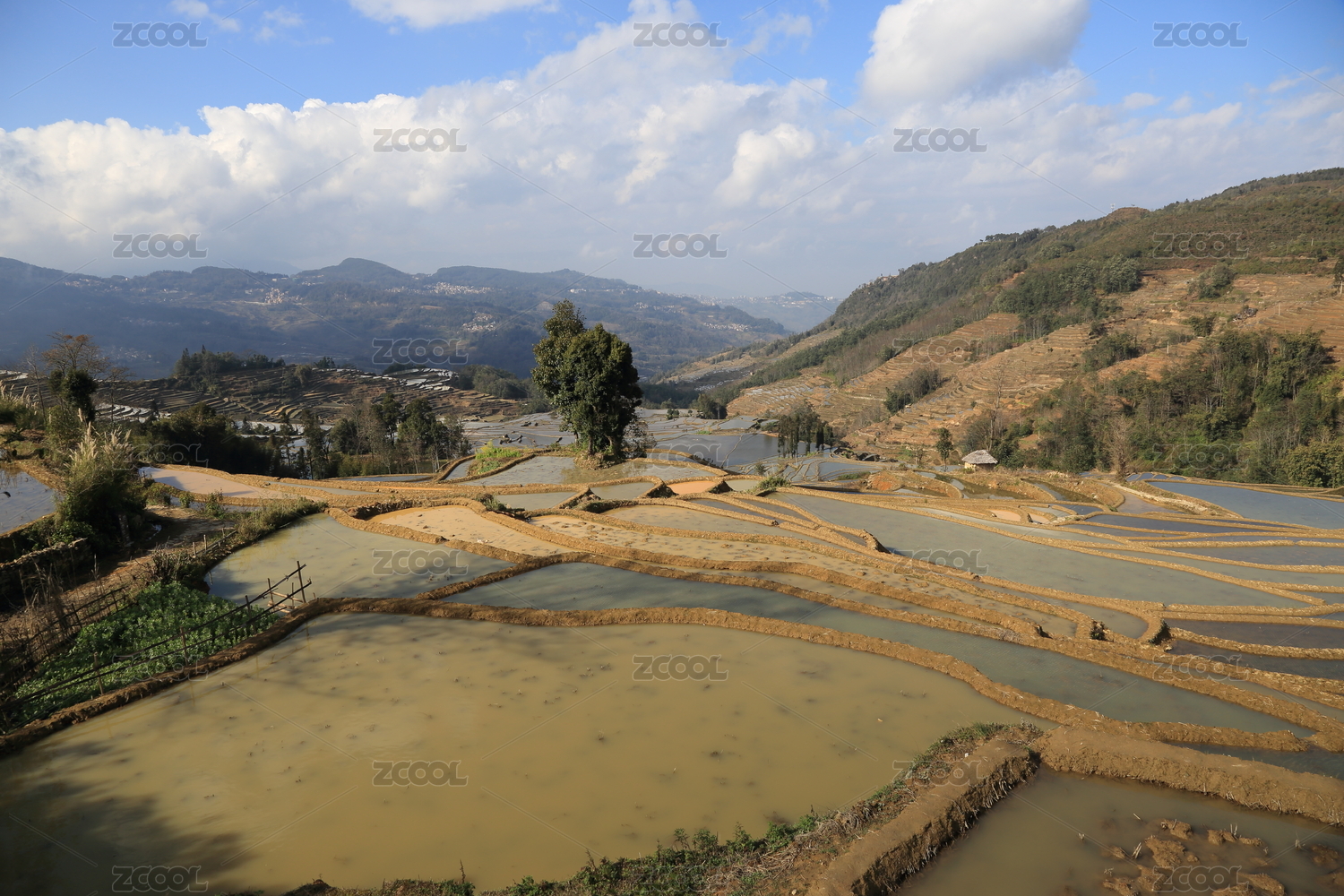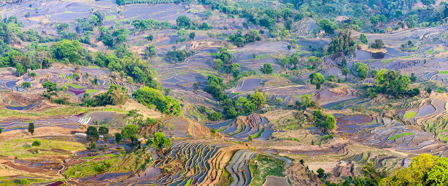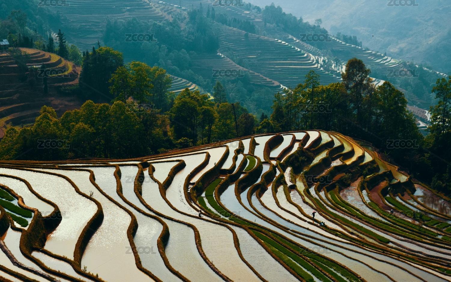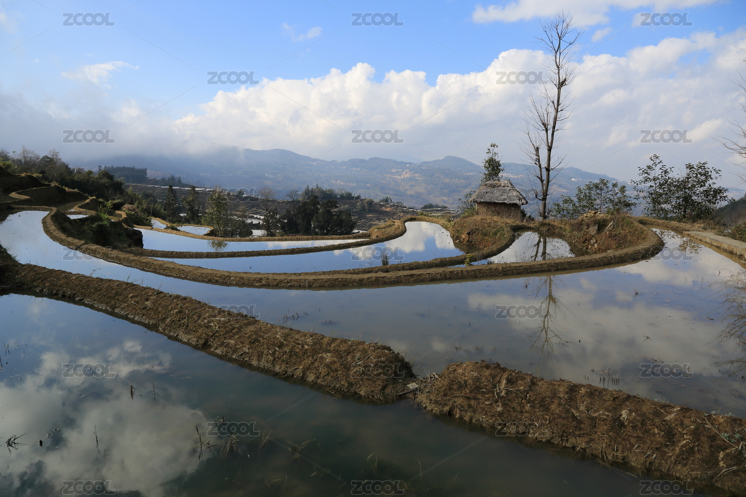 中國(guó)云南紅河元陽(yáng)哈尼梯田的水田阡陌