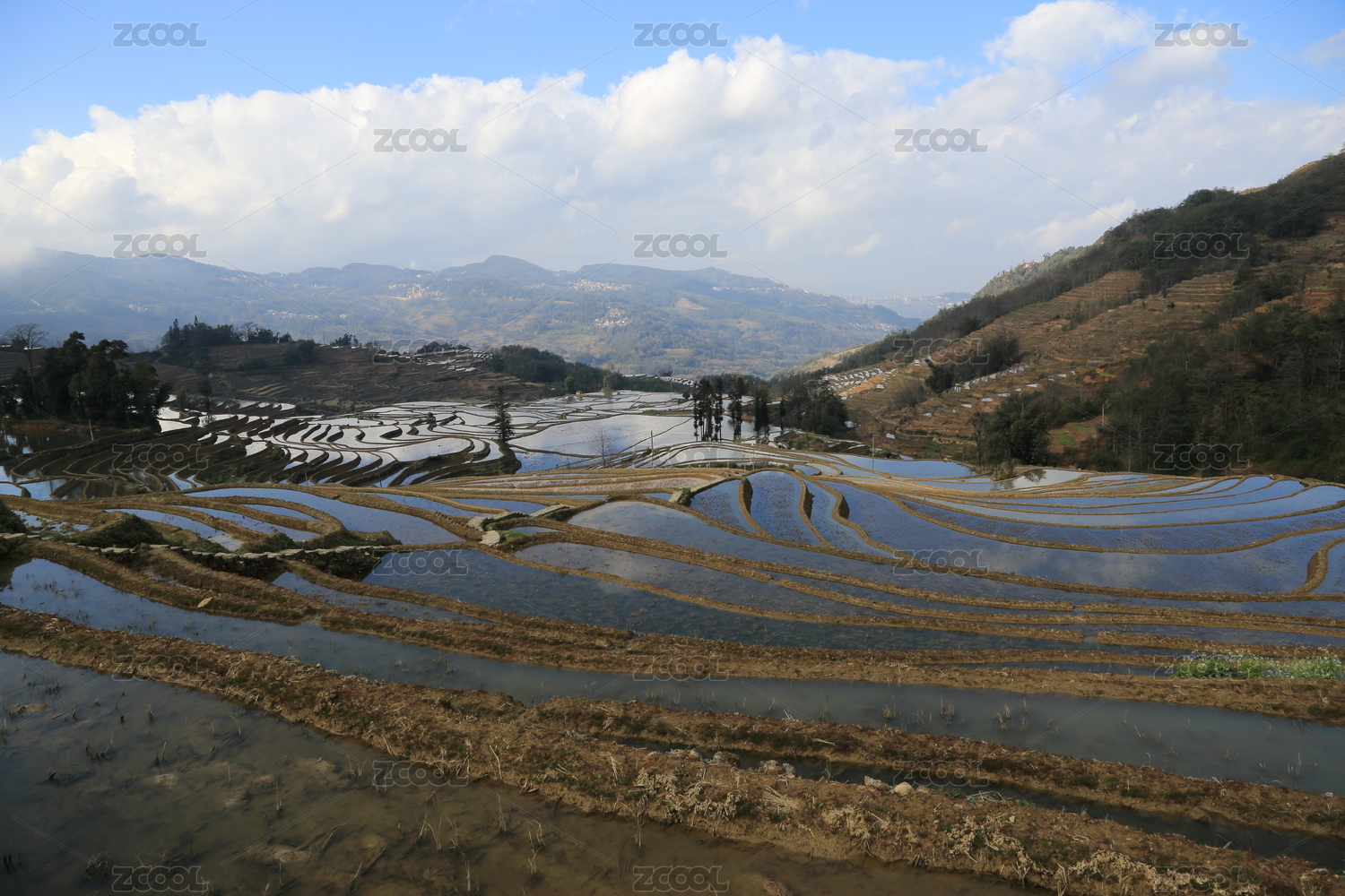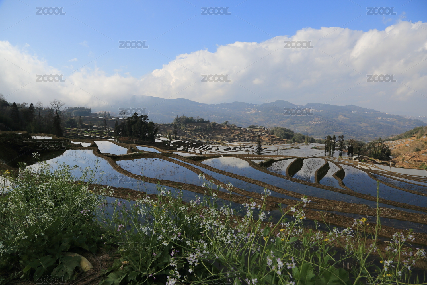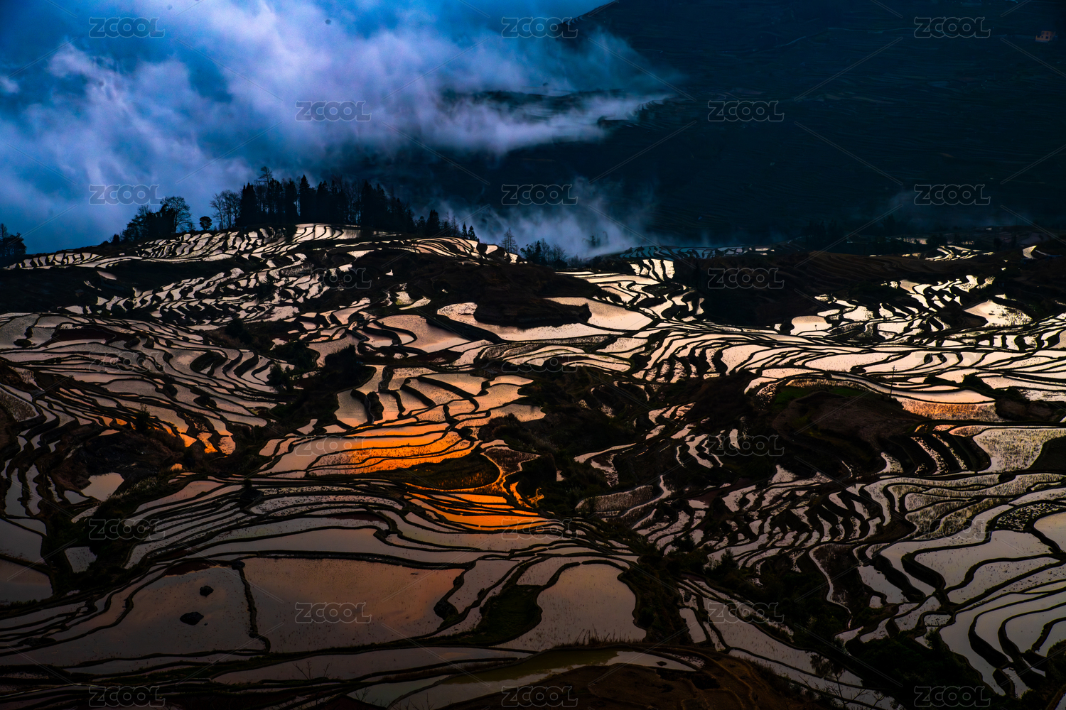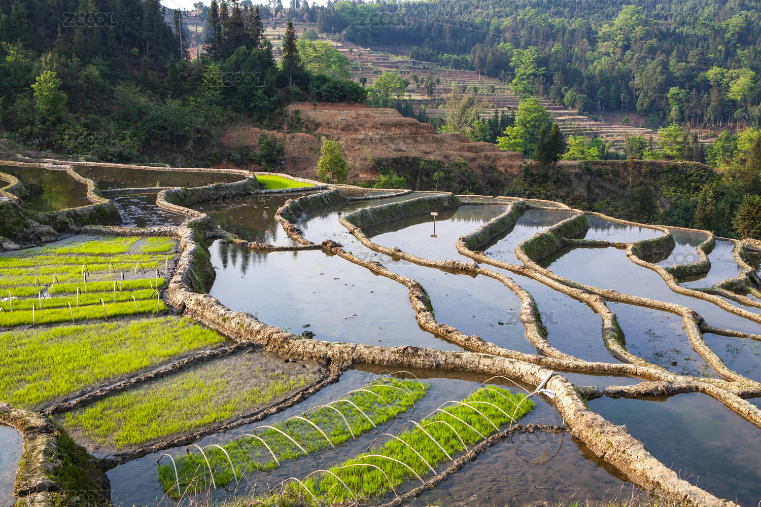 中國(guó)云南紅河元陽(yáng)哈尼梯田的水田阡陌