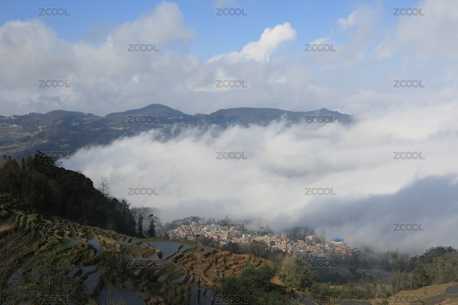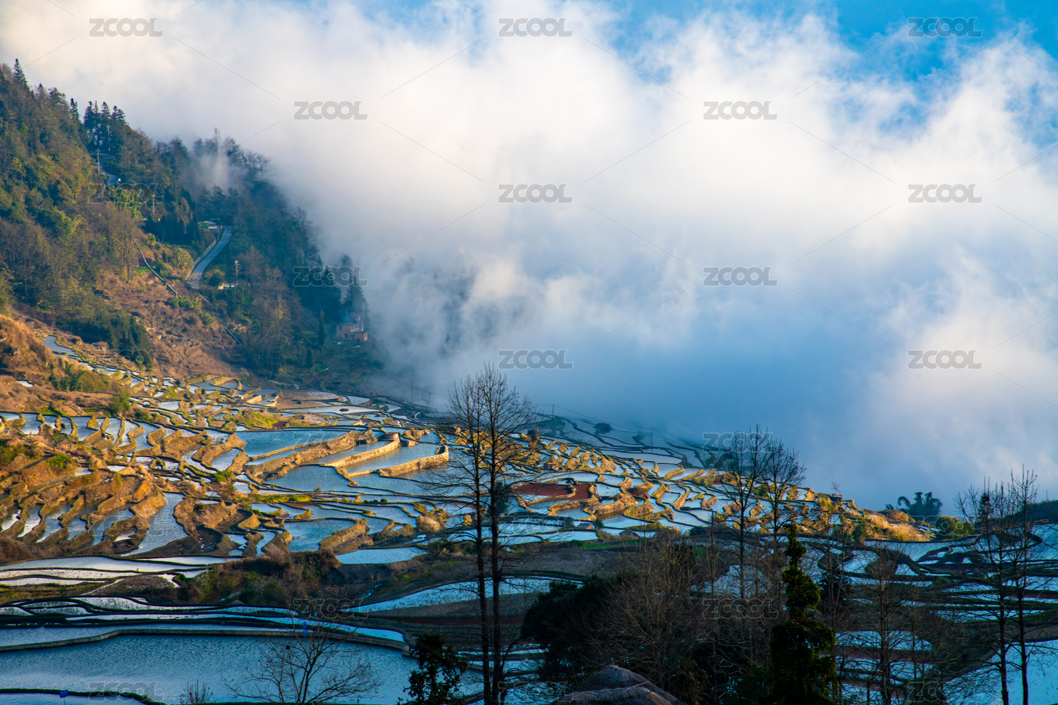 晨霧中的中國(guó)云南紅河州元陽(yáng)哈尼梯田
