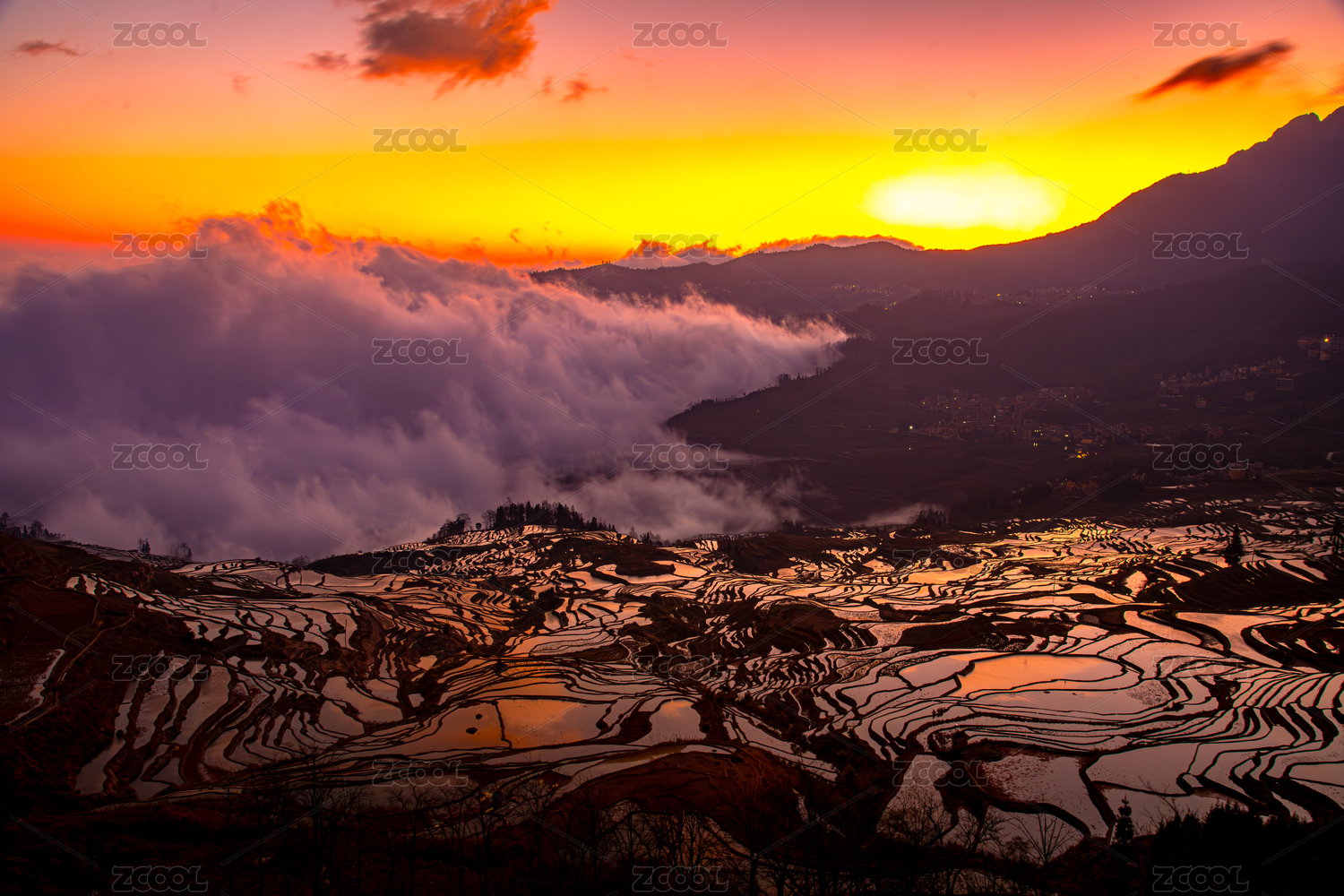 中國(guó)云南紅河元陽(yáng)晨照哈尼梯田
