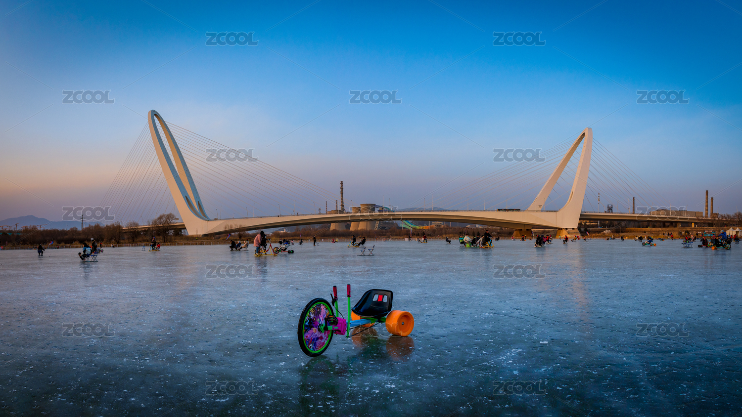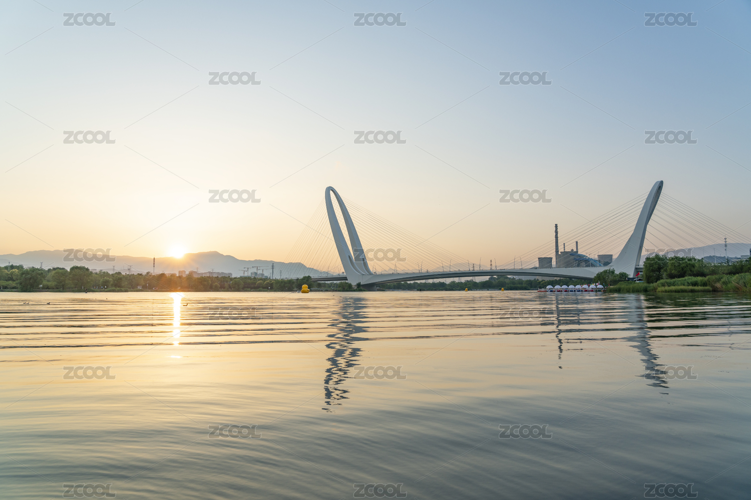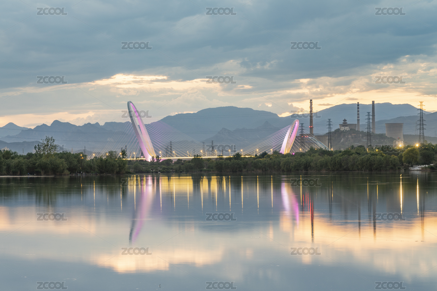 日落蓮石湖新首鋼大橋自然風(fēng)景