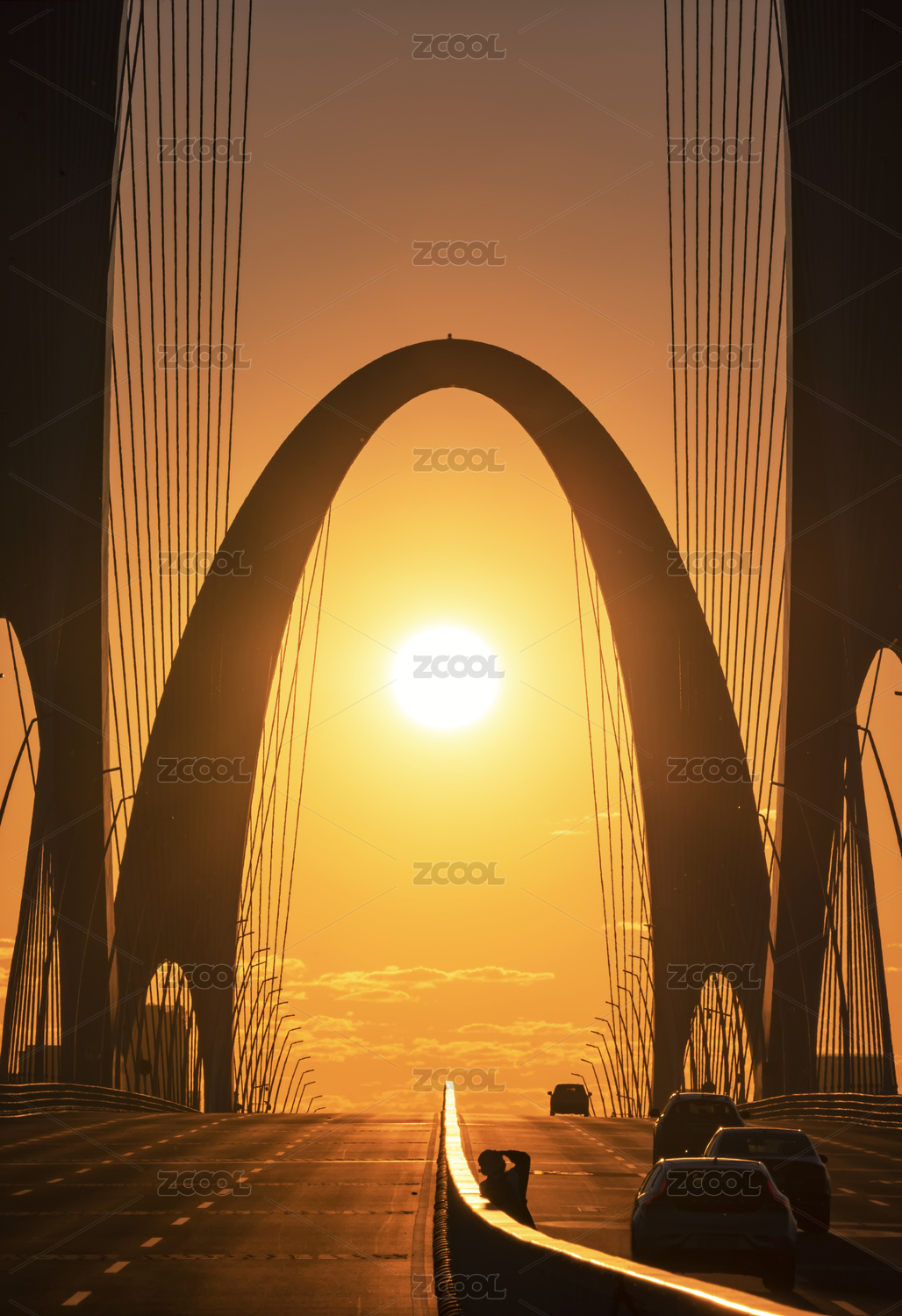 中國(guó)北京門頭溝區(qū)新首鋼大橋日出懸日