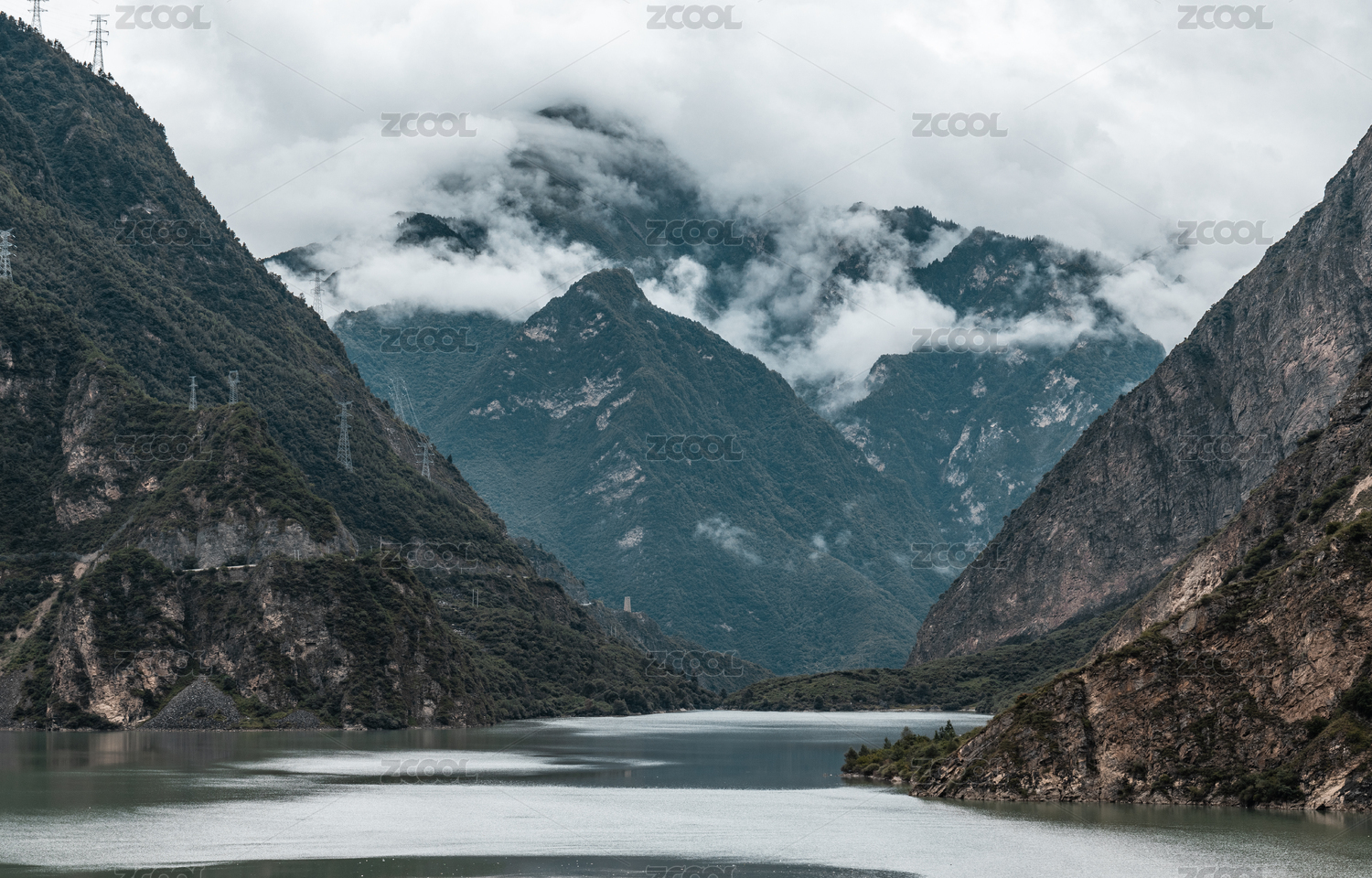 中國四川阿壩茂縣岷江上的下疊溪海子風光