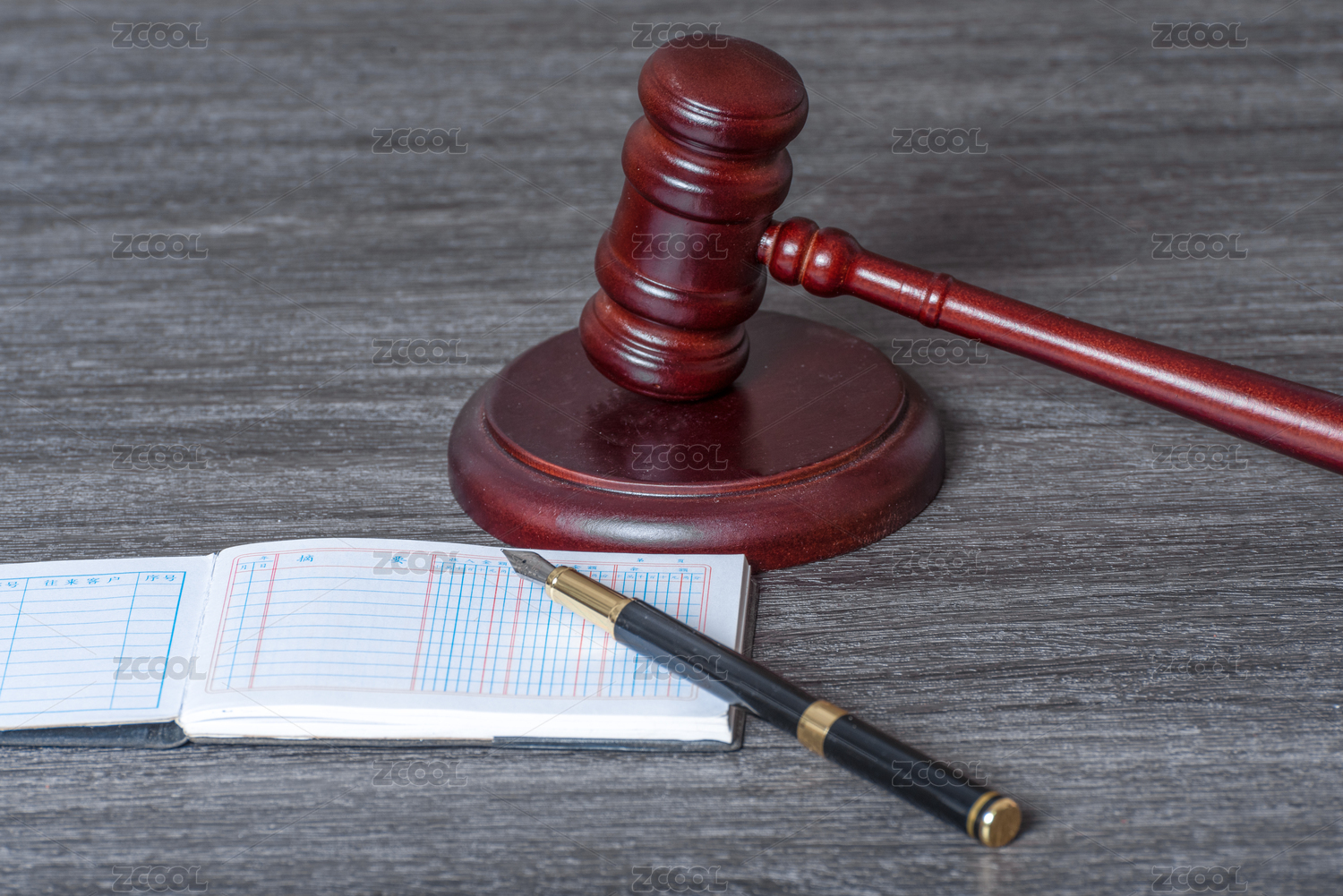 法官錘與放在賬簿上的鋼筆