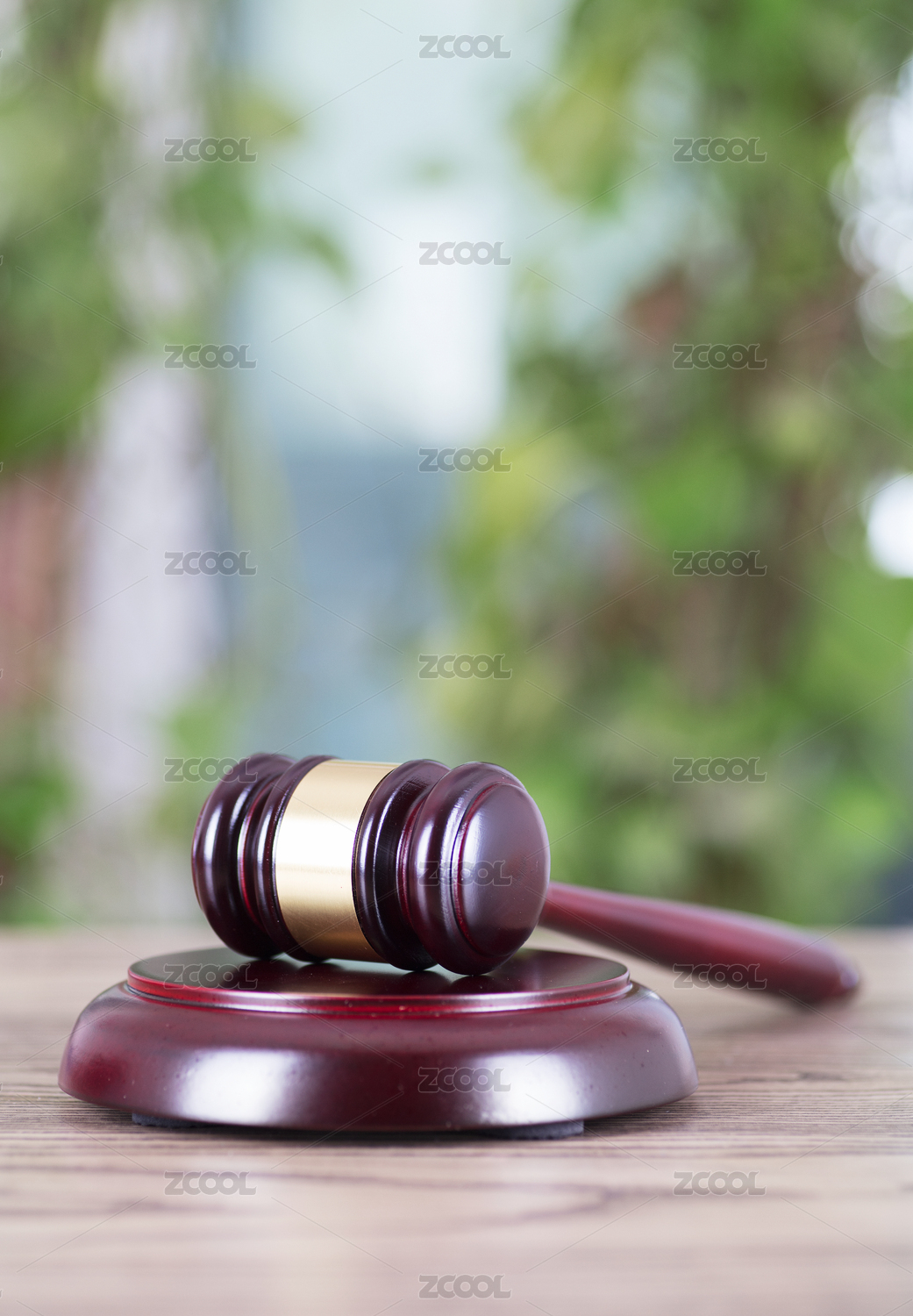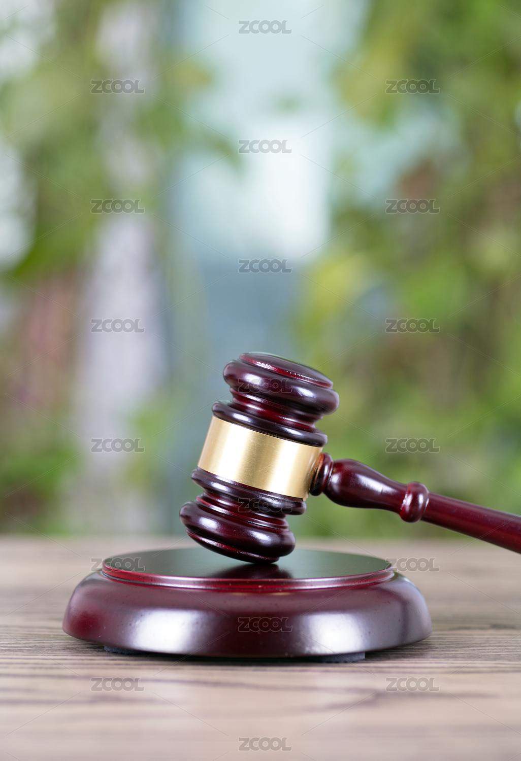 木紋桌面上的法官錘和銀行卡智能電話(huà)