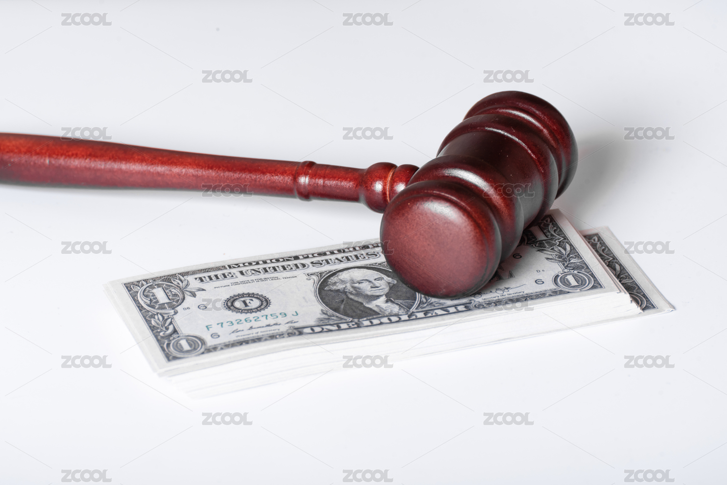 放在一疊美元上的法官錘