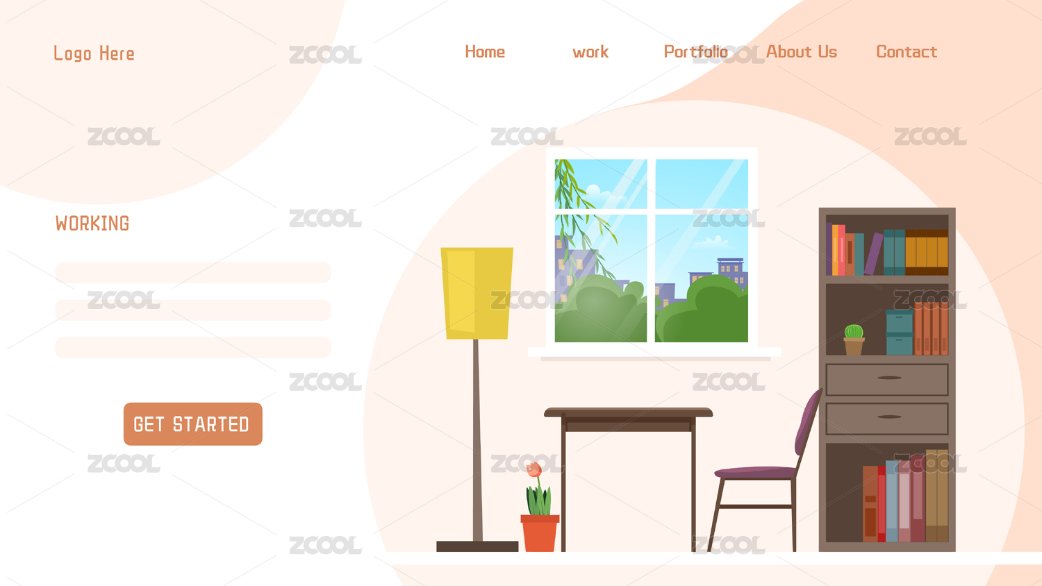 明亮閱讀學習辦公場所網絡首頁插畫矢量圖