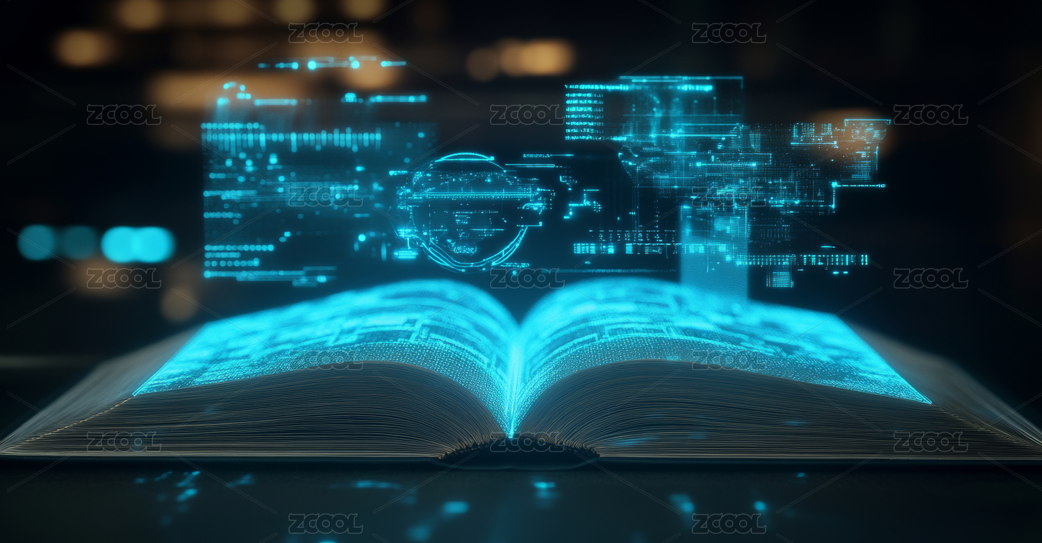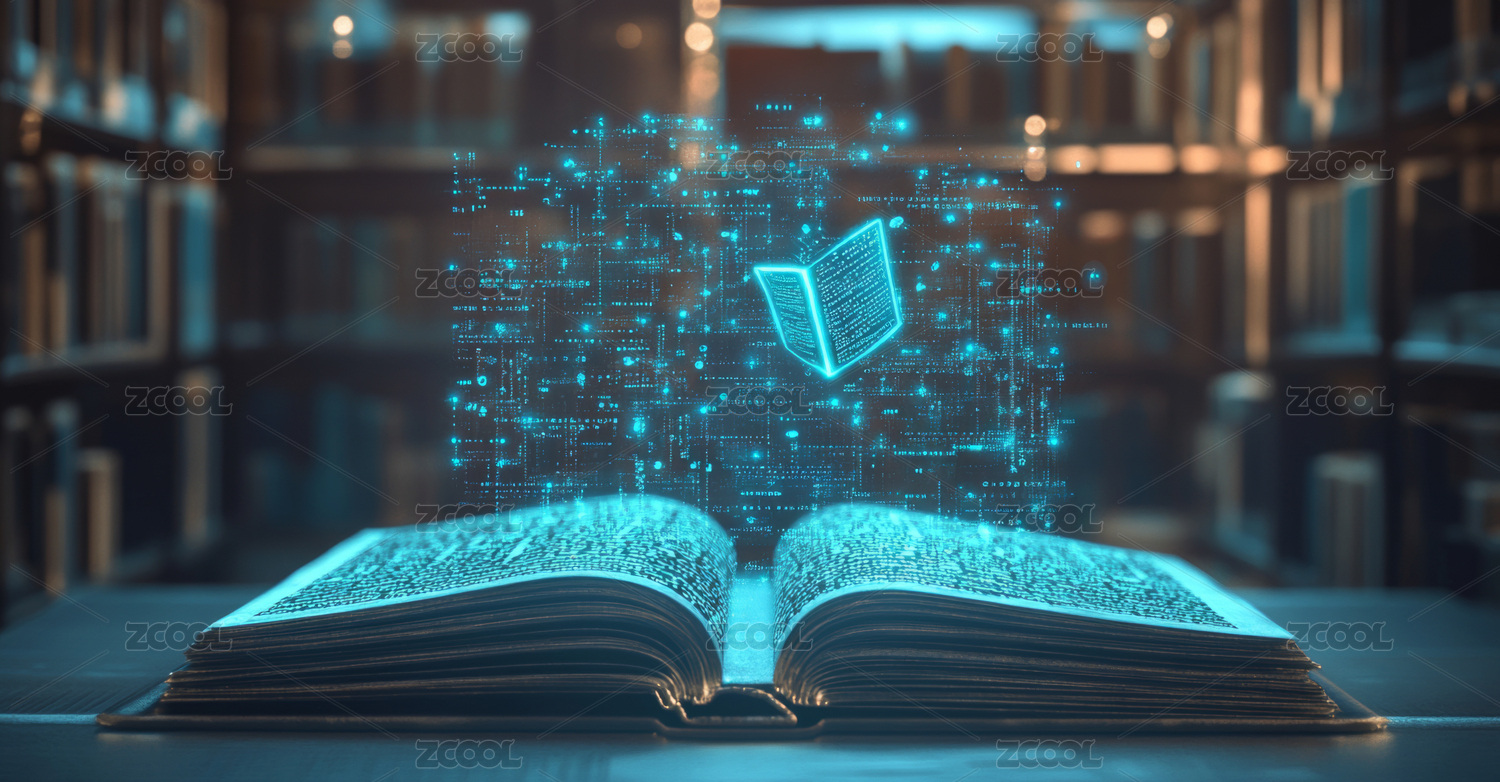 一本打開的書和漂浮著一些圖標和符號