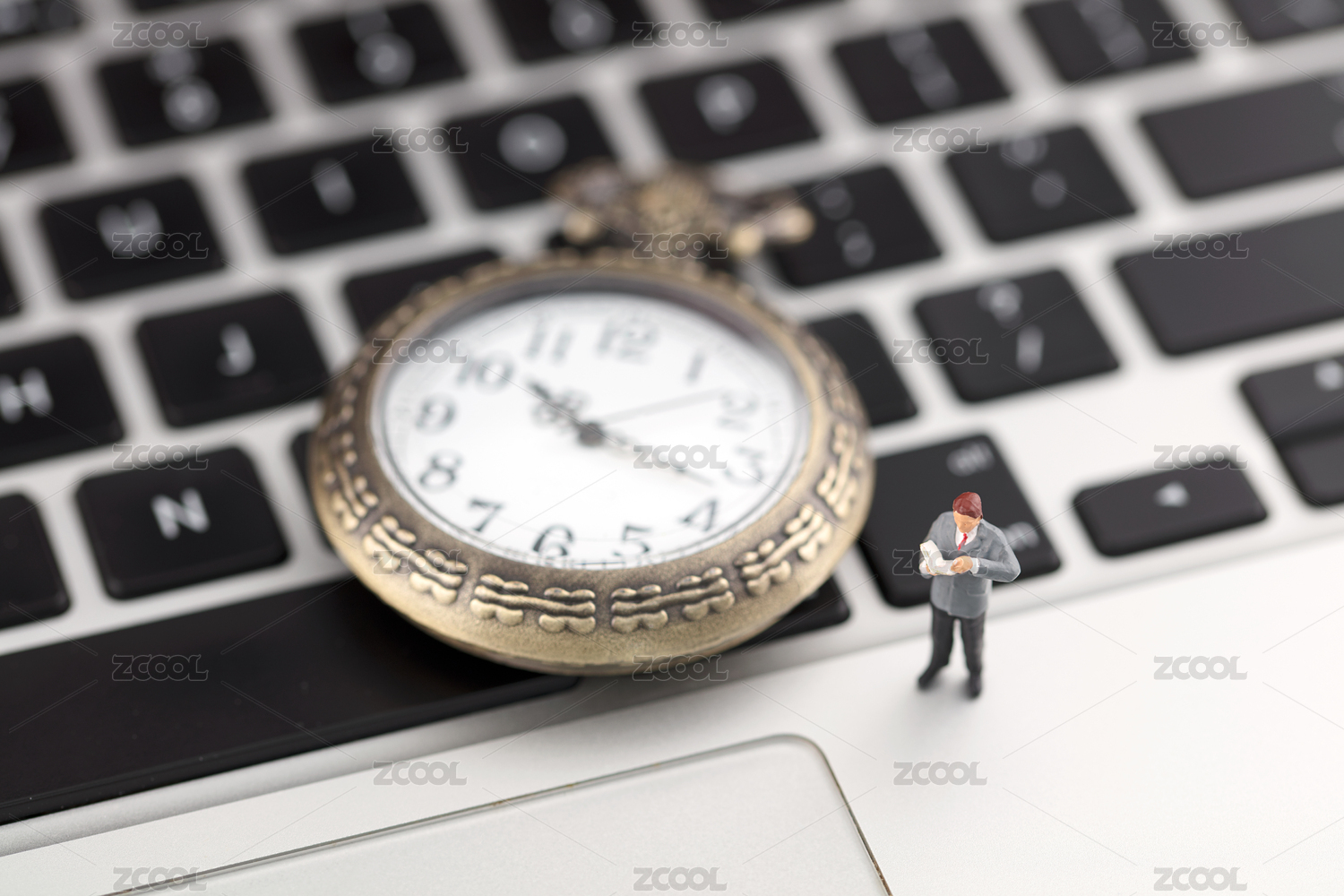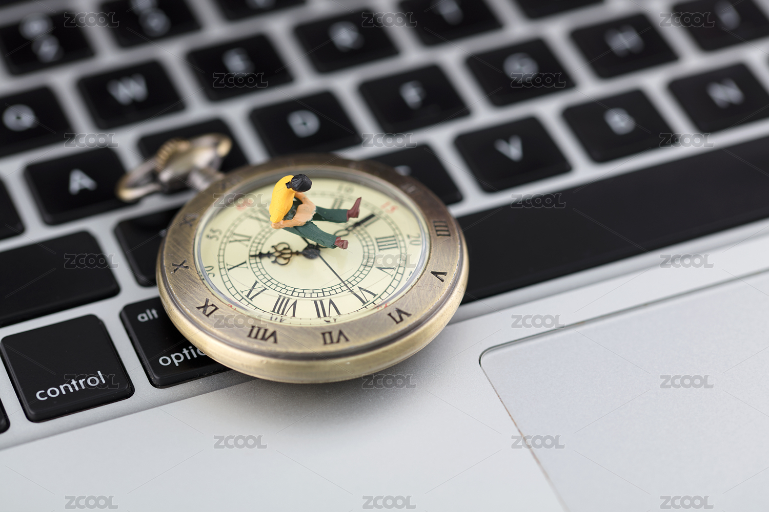 人偶在微縮的場景里的WIFI字母上看書