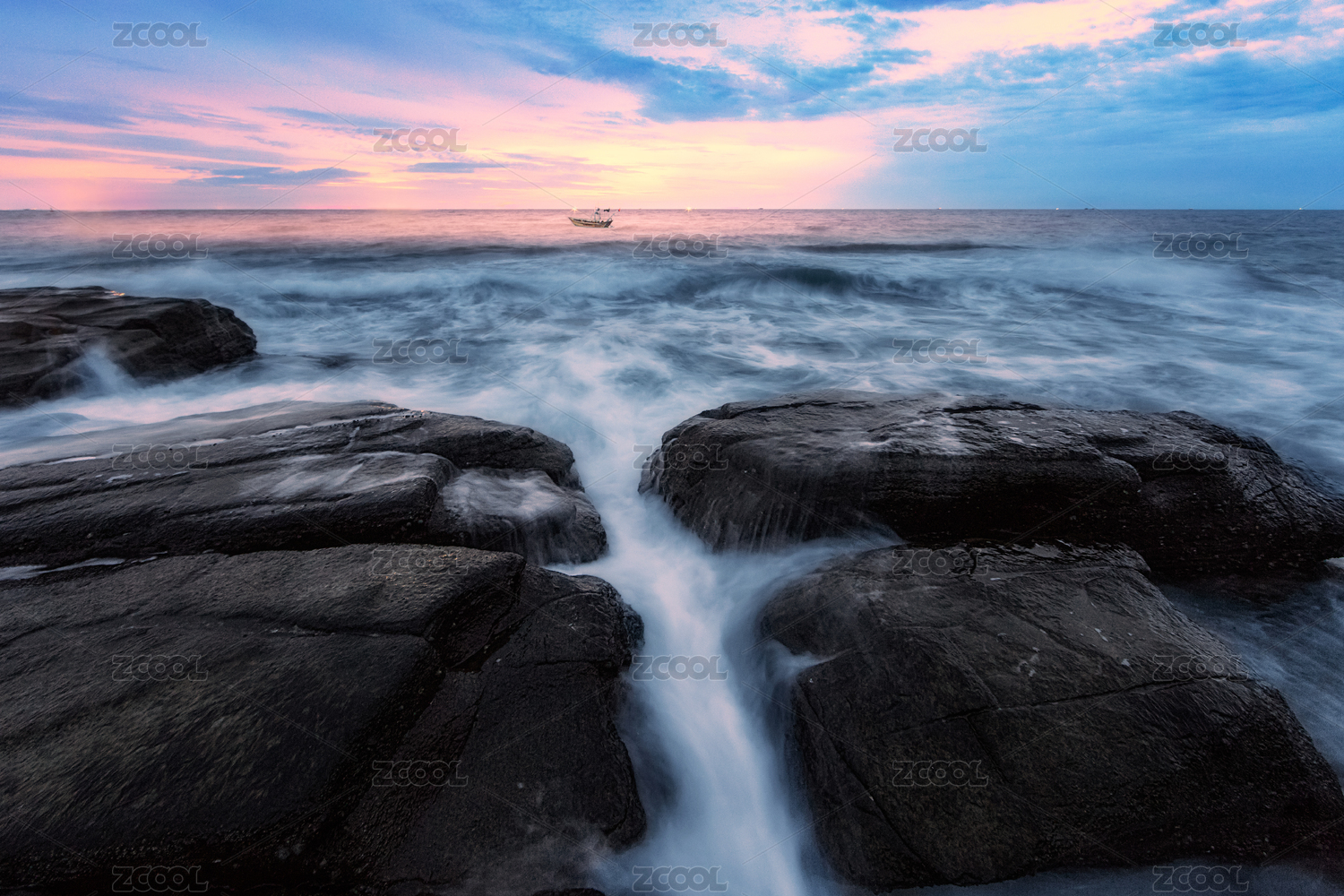 廣西北海潿洲島海邊石螺口日落晚霞航拍
