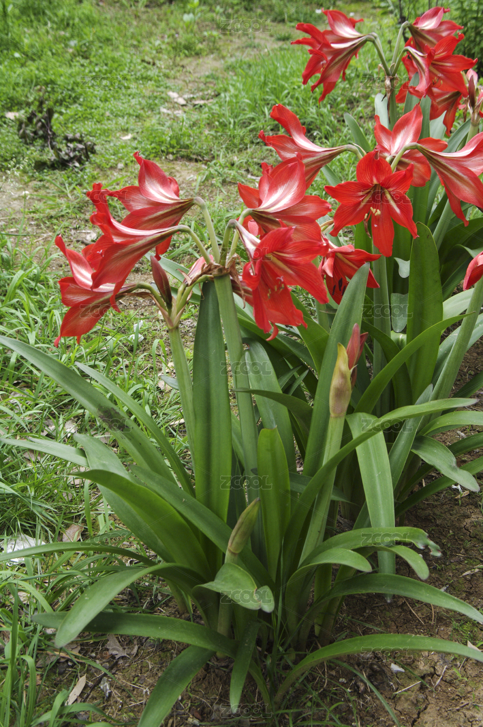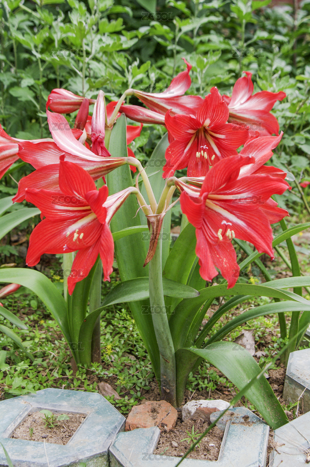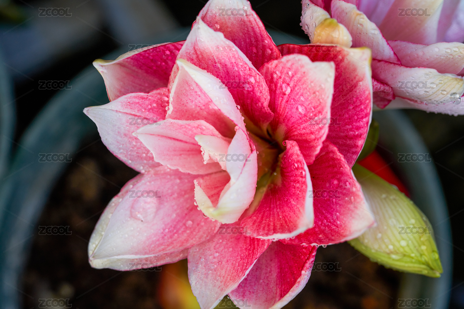 白天陽光下綻放的朱頂紅鮮花花瓣特寫