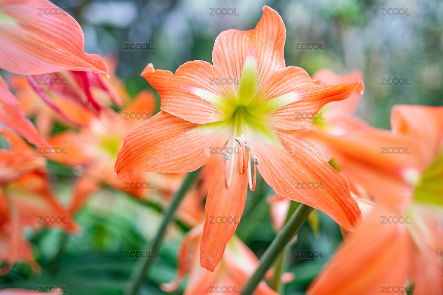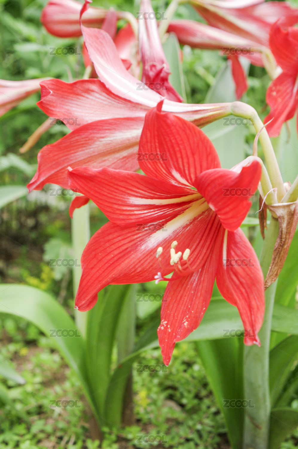 白天陽光下綻放的朱頂紅鮮花花蕊特寫