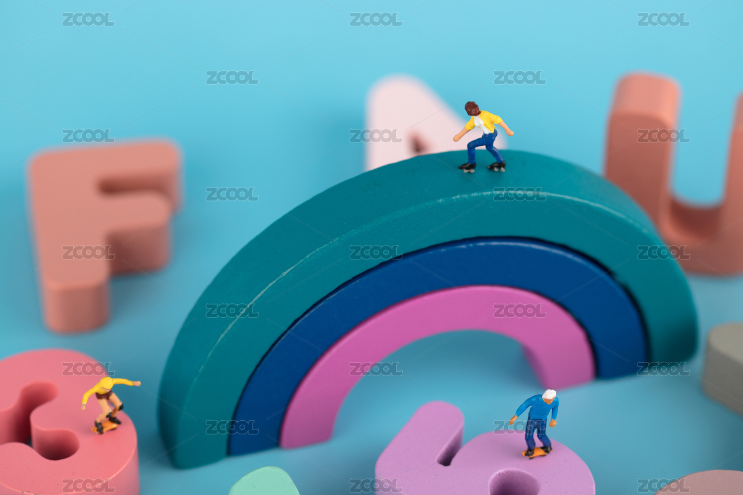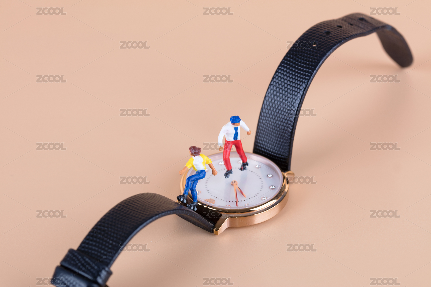 在手表上滑旱冰的微縮人偶