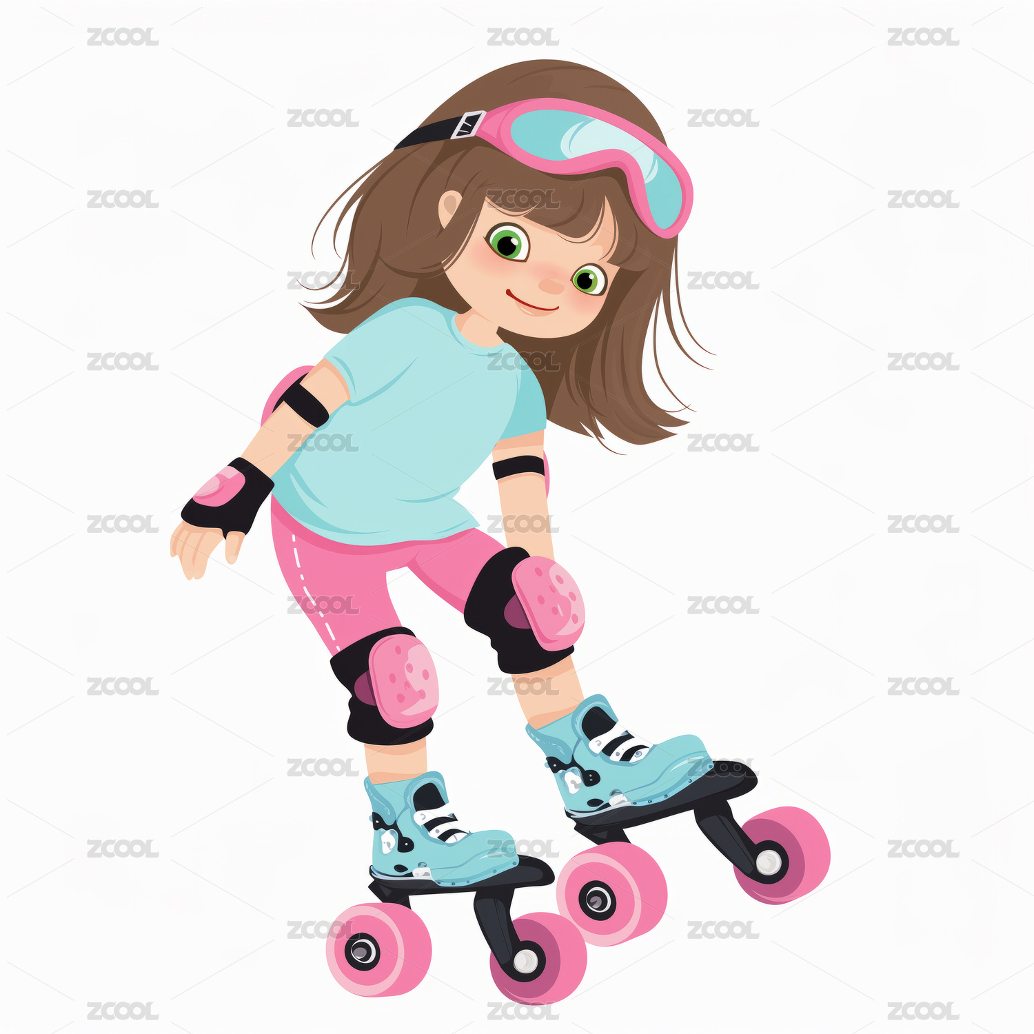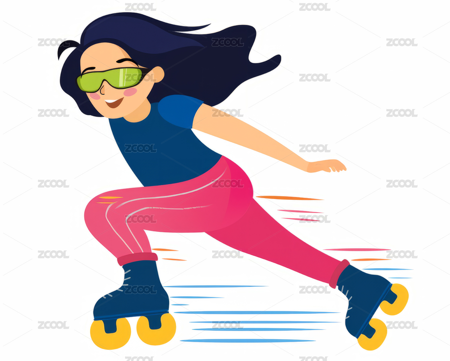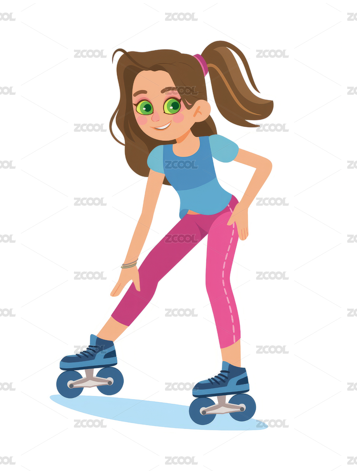 活力女孩滑旱冰插畫