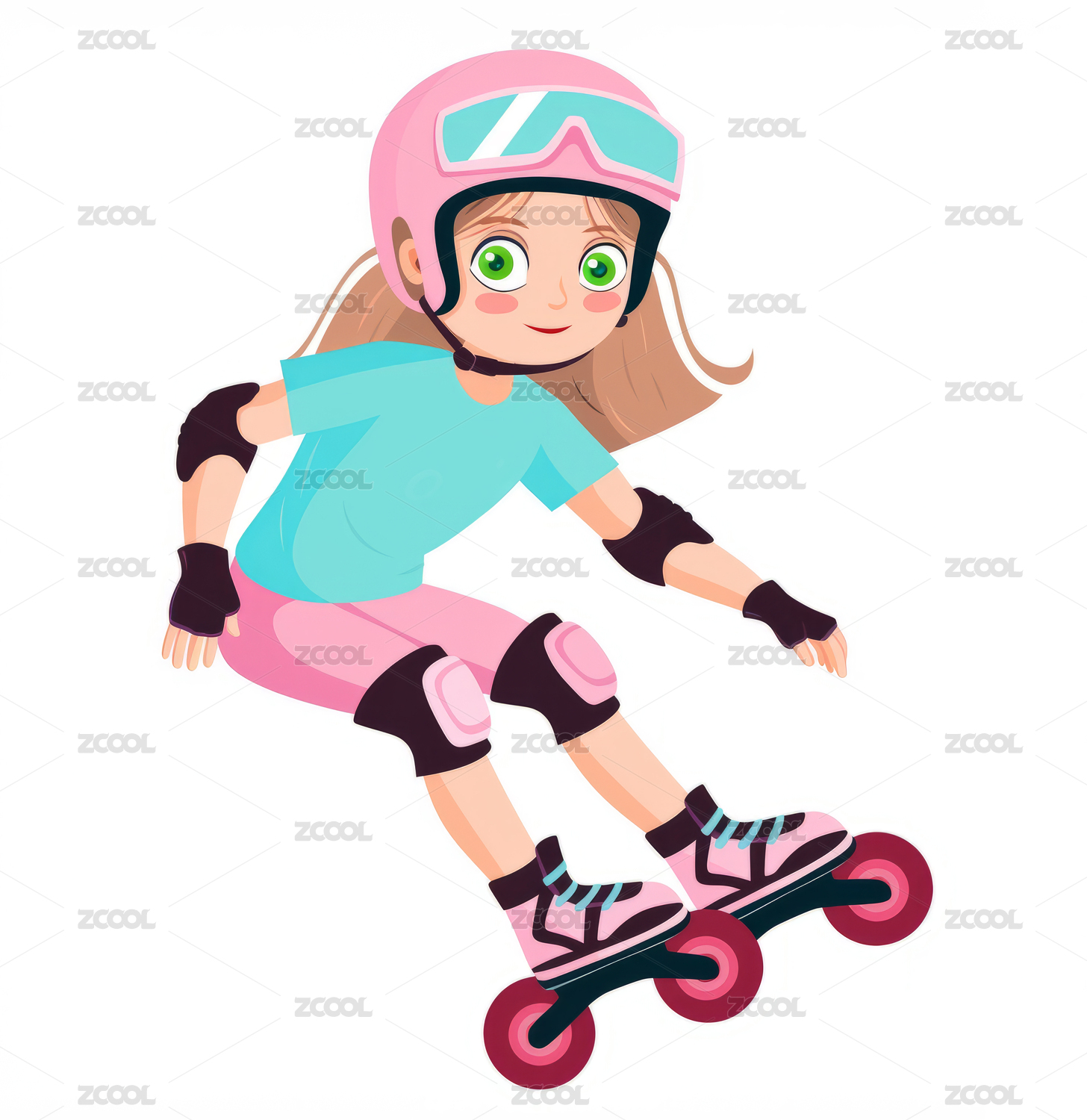 一個輪滑女生卡通插畫