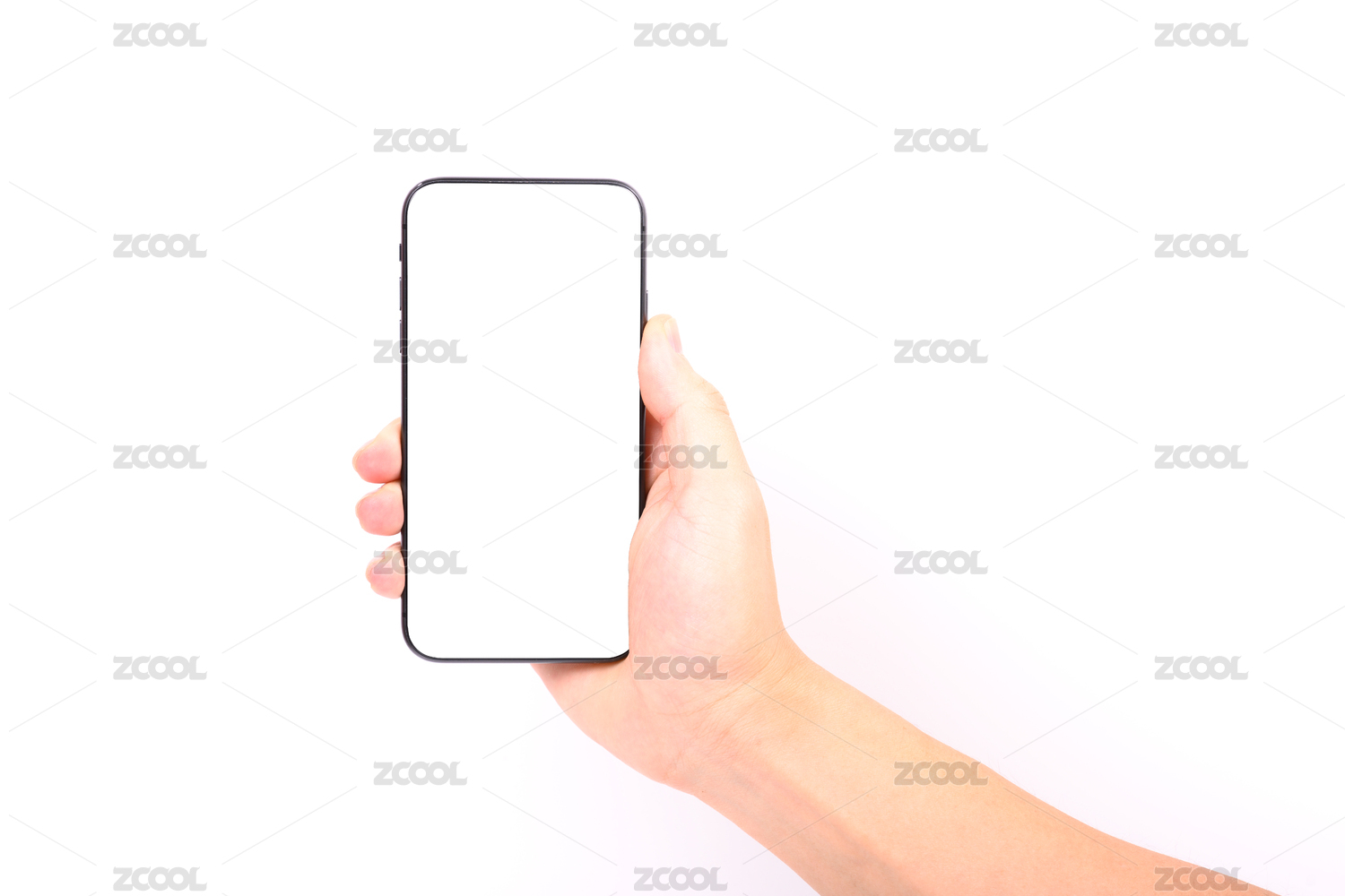 白色背景上一只手拿著空白手機(jī)