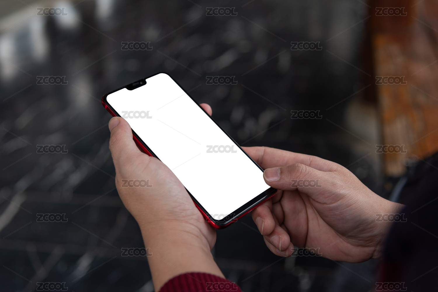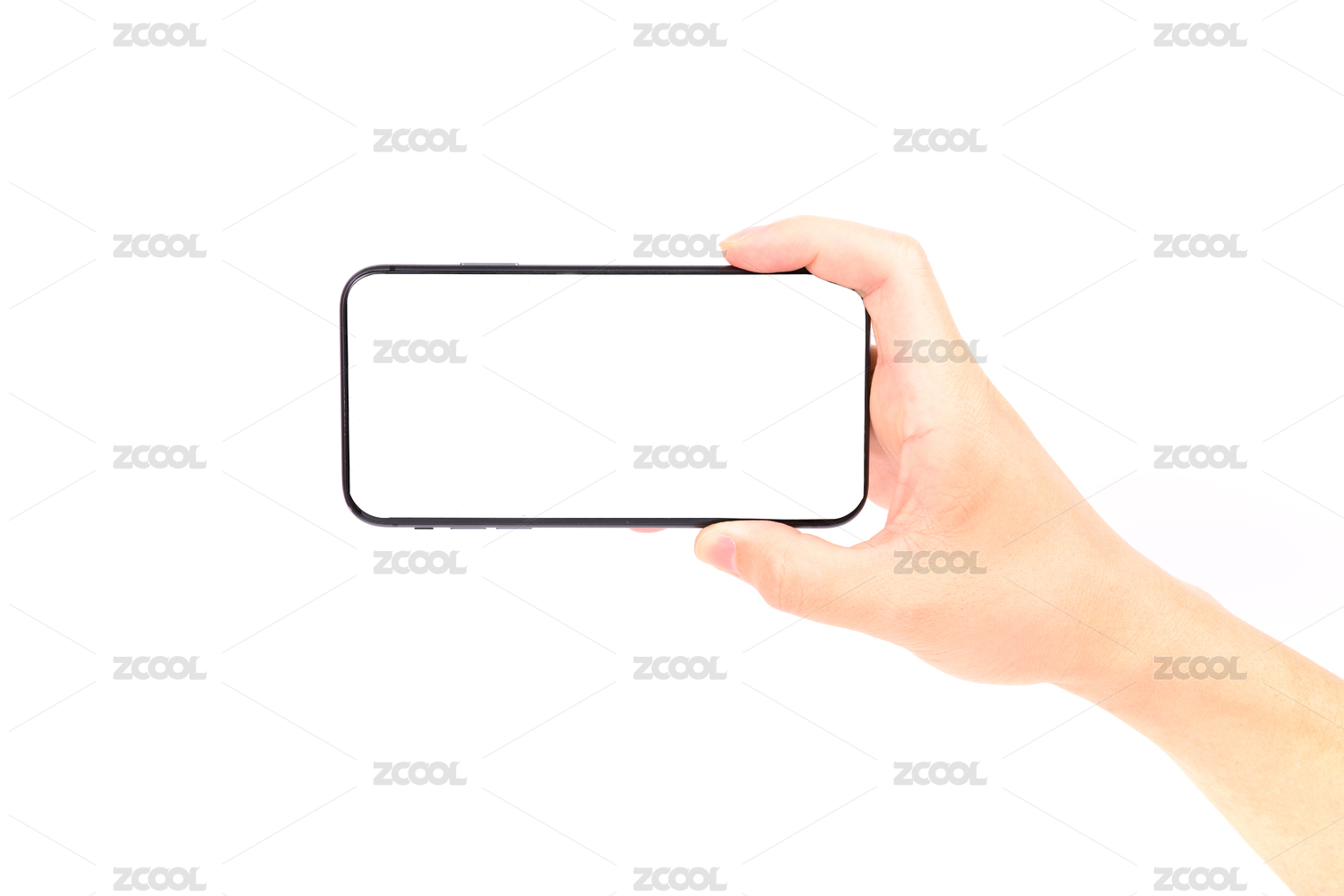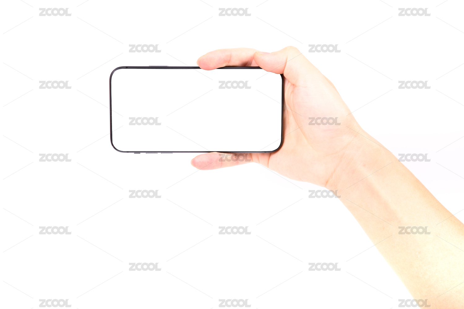 一只男人手拿著一個空白手機(jī)