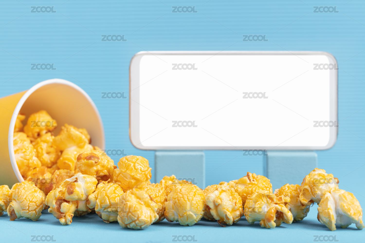 紙杯坐在爆米花上手機(jī)看電影