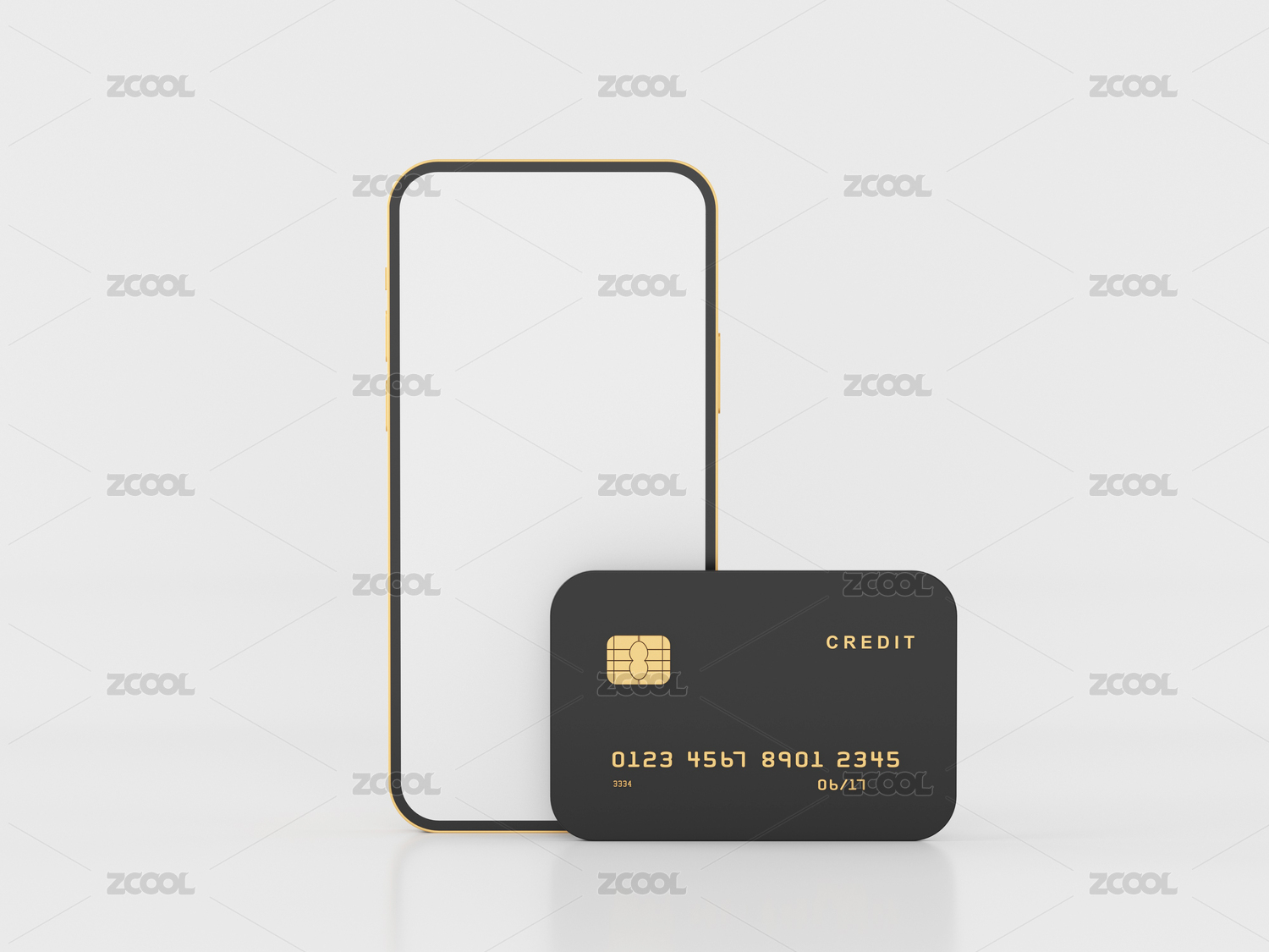 3D渲染的銀行卡和空白手機(jī)
