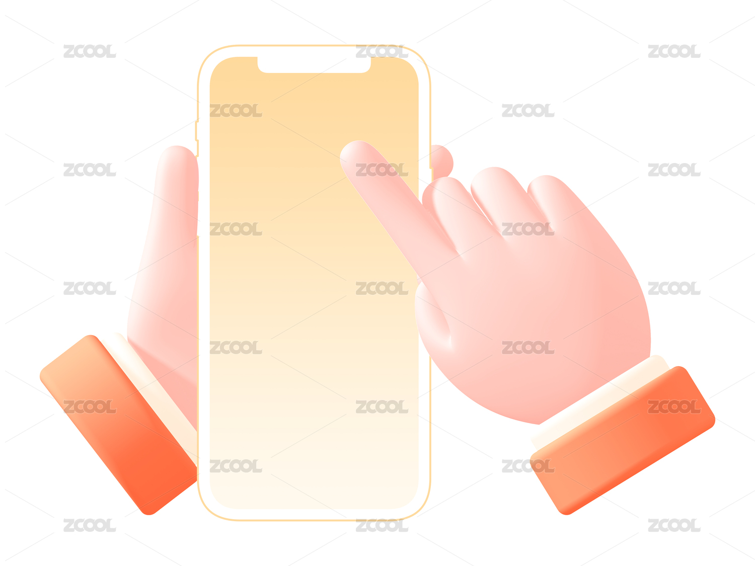 3D渲染卡通拿在手里的空白手機(jī)