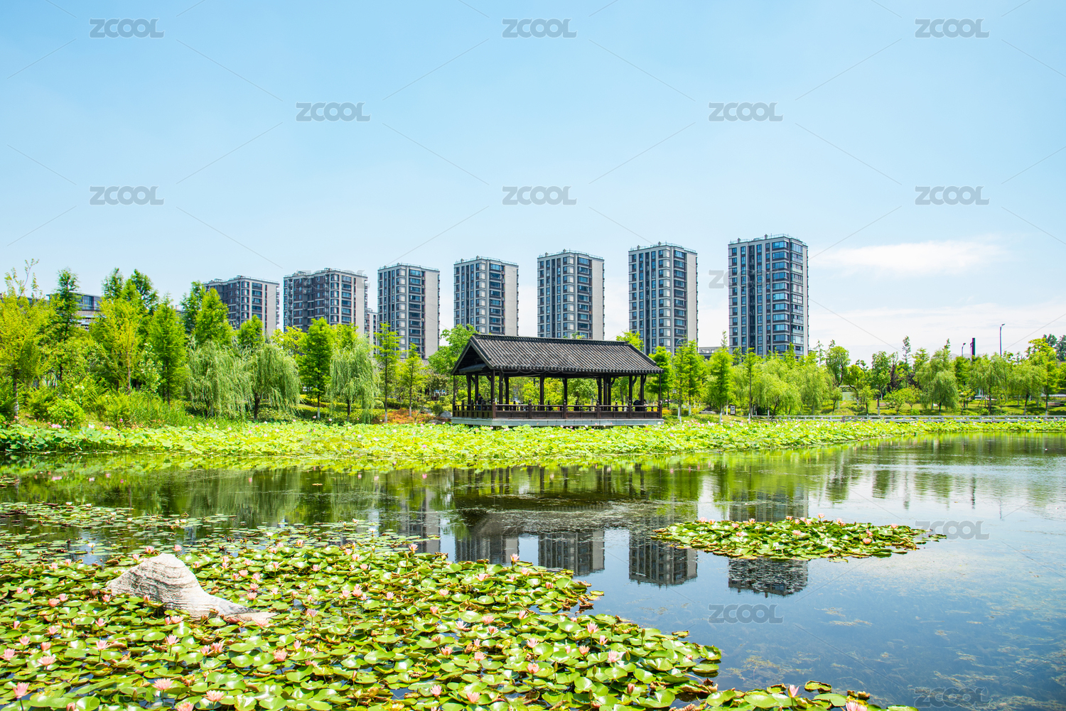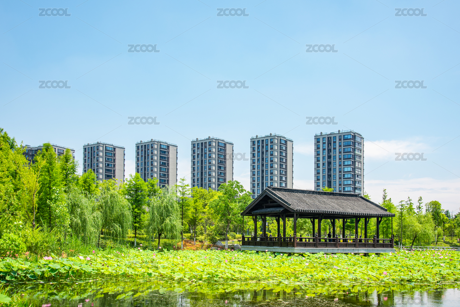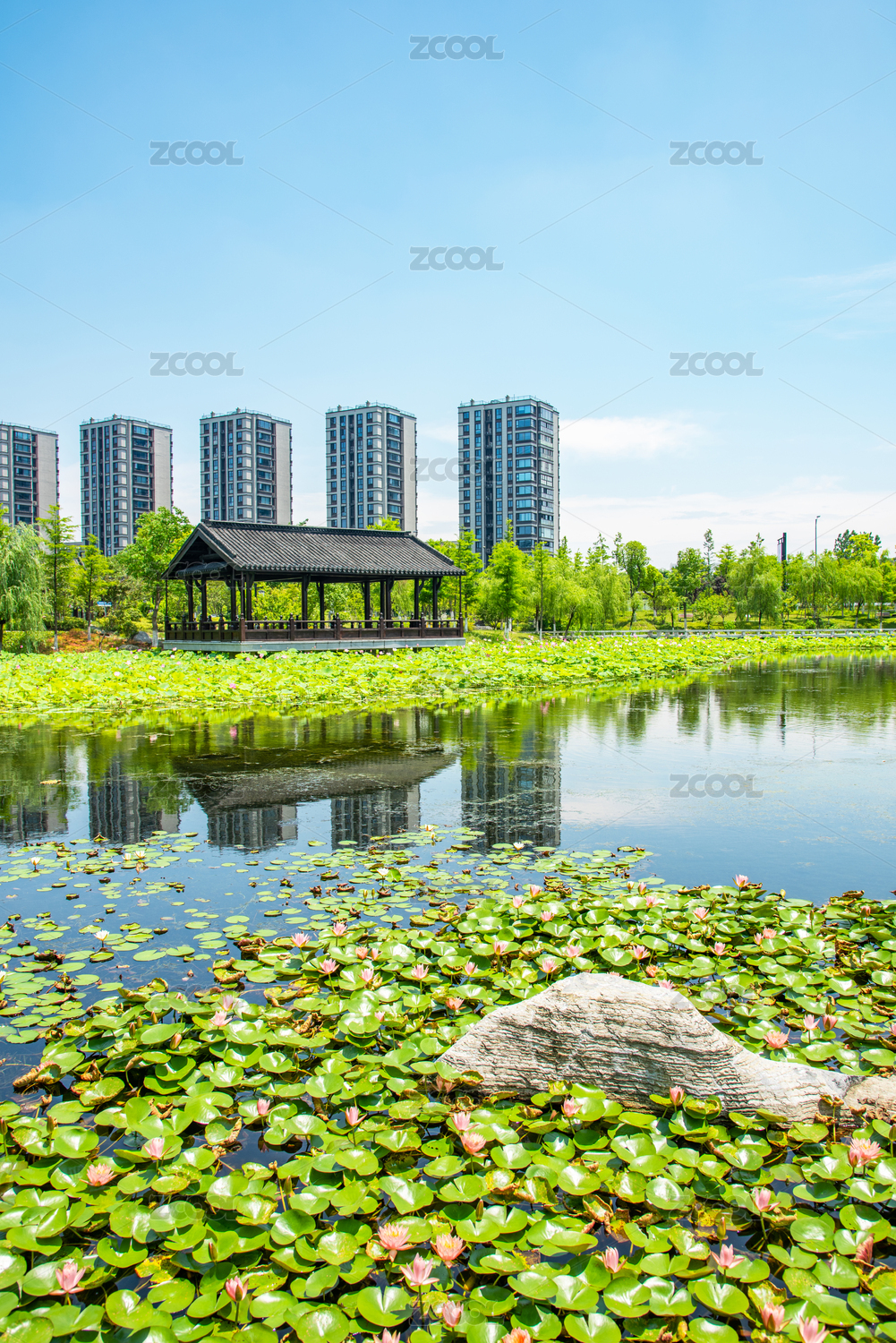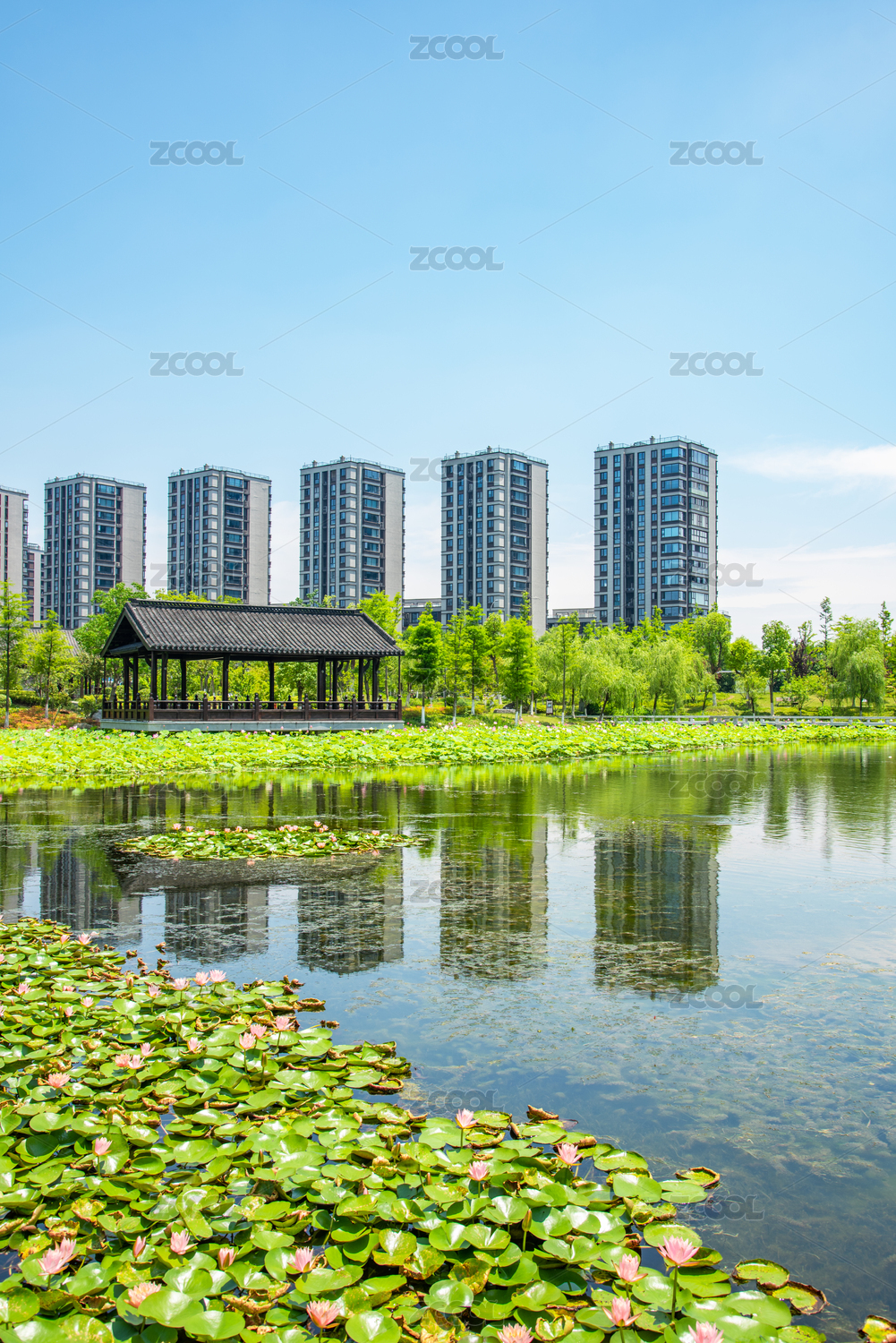 中國(guó)浙江杭州上城區(qū)丁橋桃花湖公園風(fēng)景