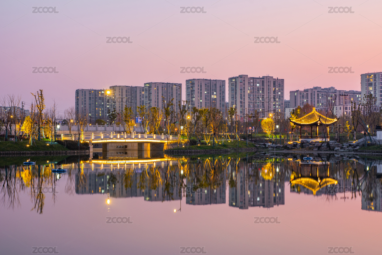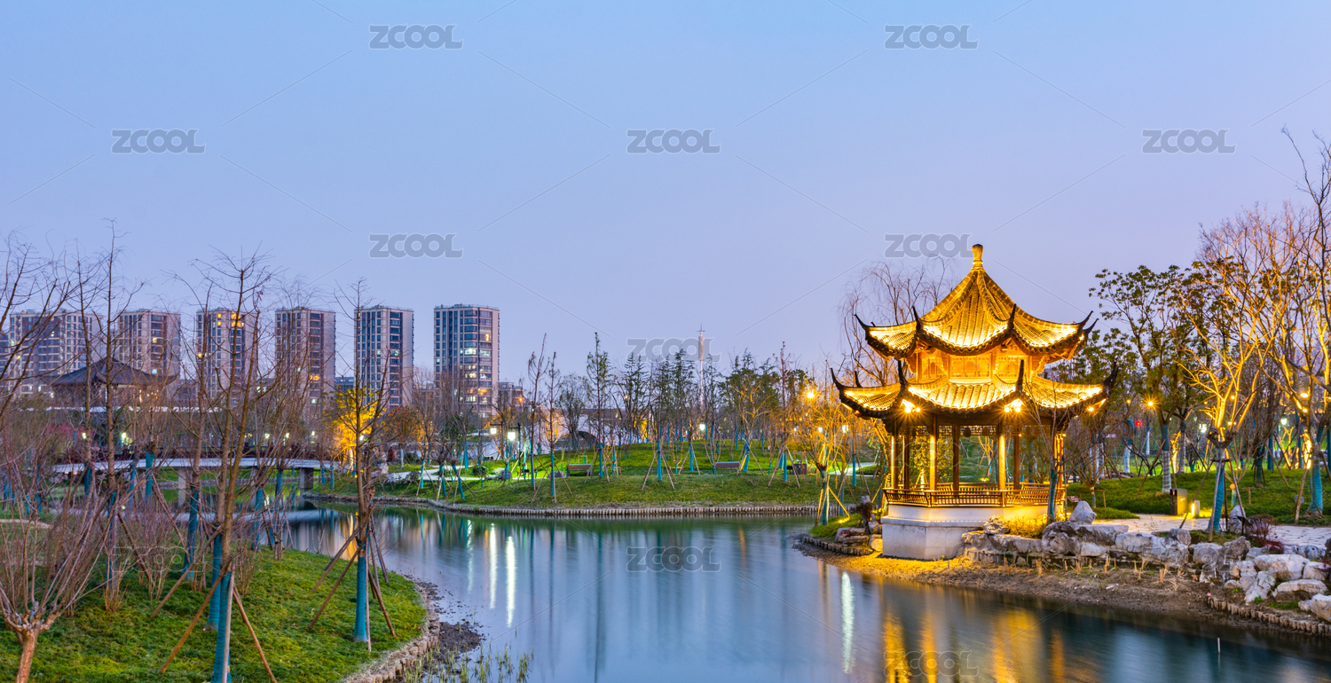 中國(guó)浙江杭州上城區(qū)丁橋桃花湖公園夜景