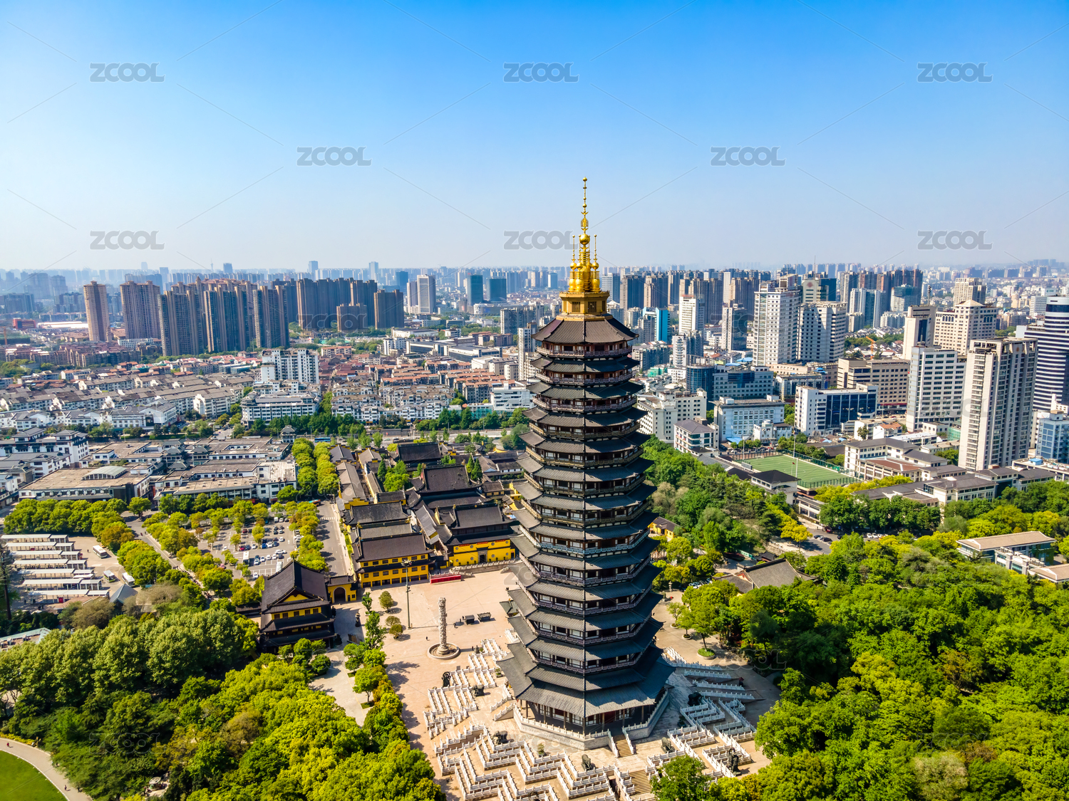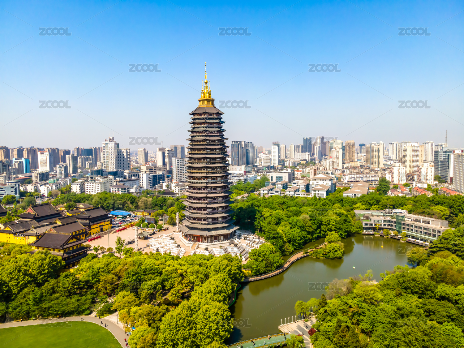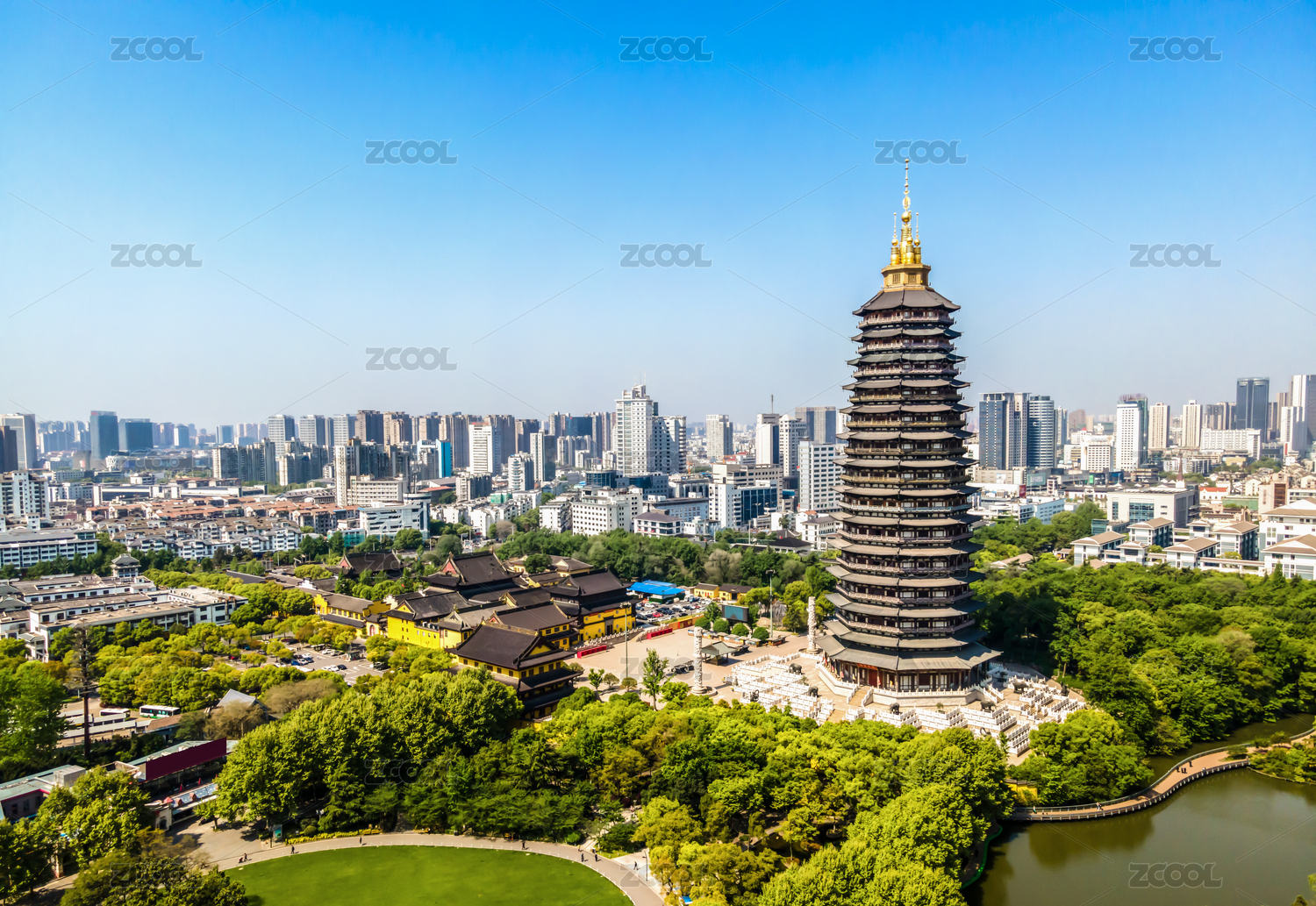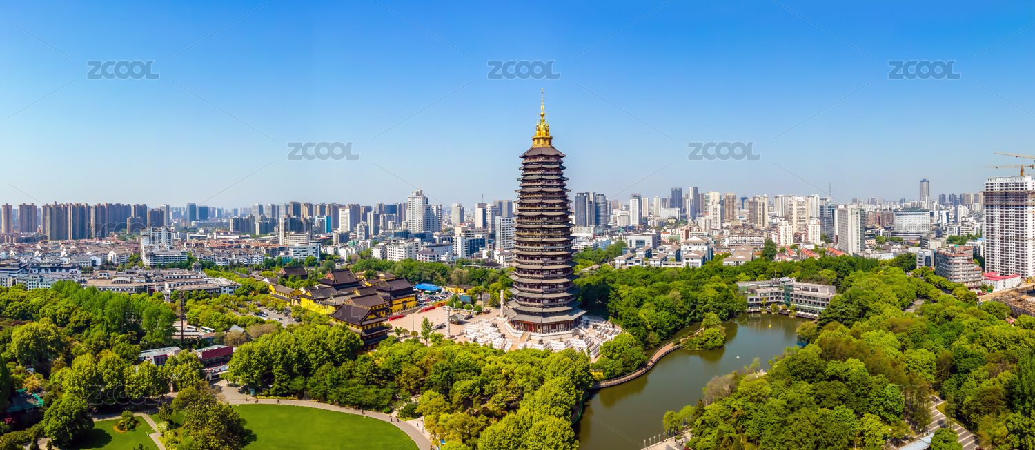 航拍江蘇常州紅梅公園天寧寺塔