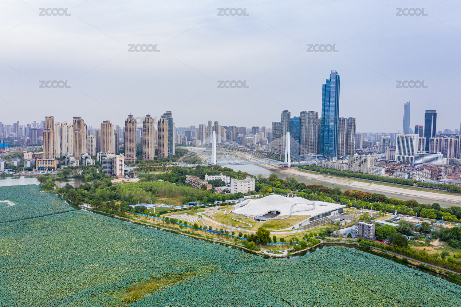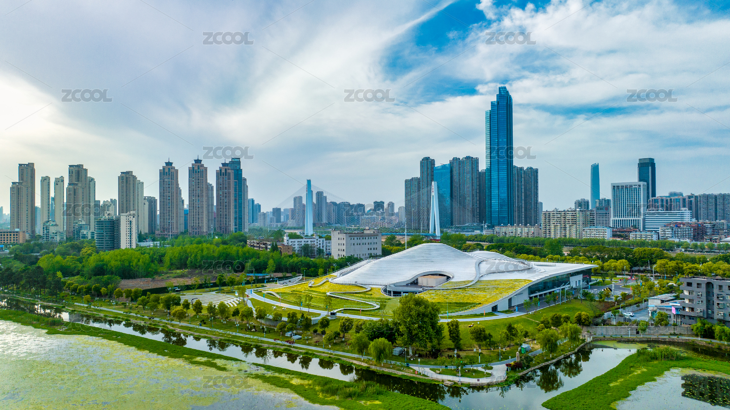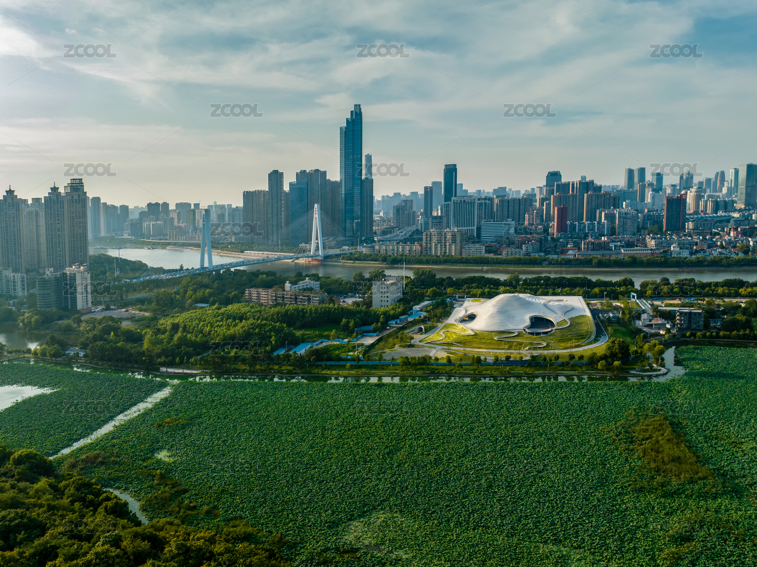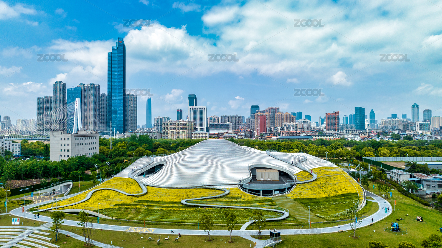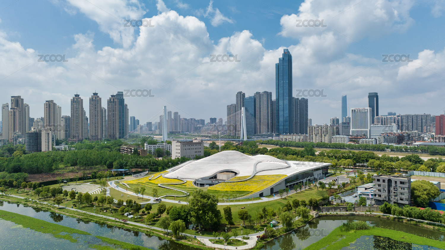 航拍武漢琴臺(tái)美術(shù)館和城市風(fēng)光