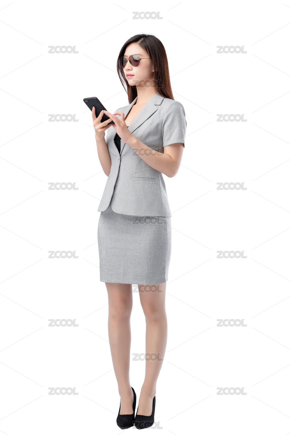 白色背景里,亞洲職業(yè)女性全身照