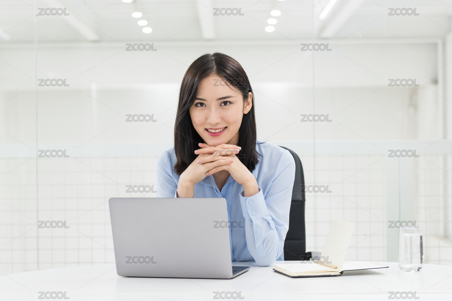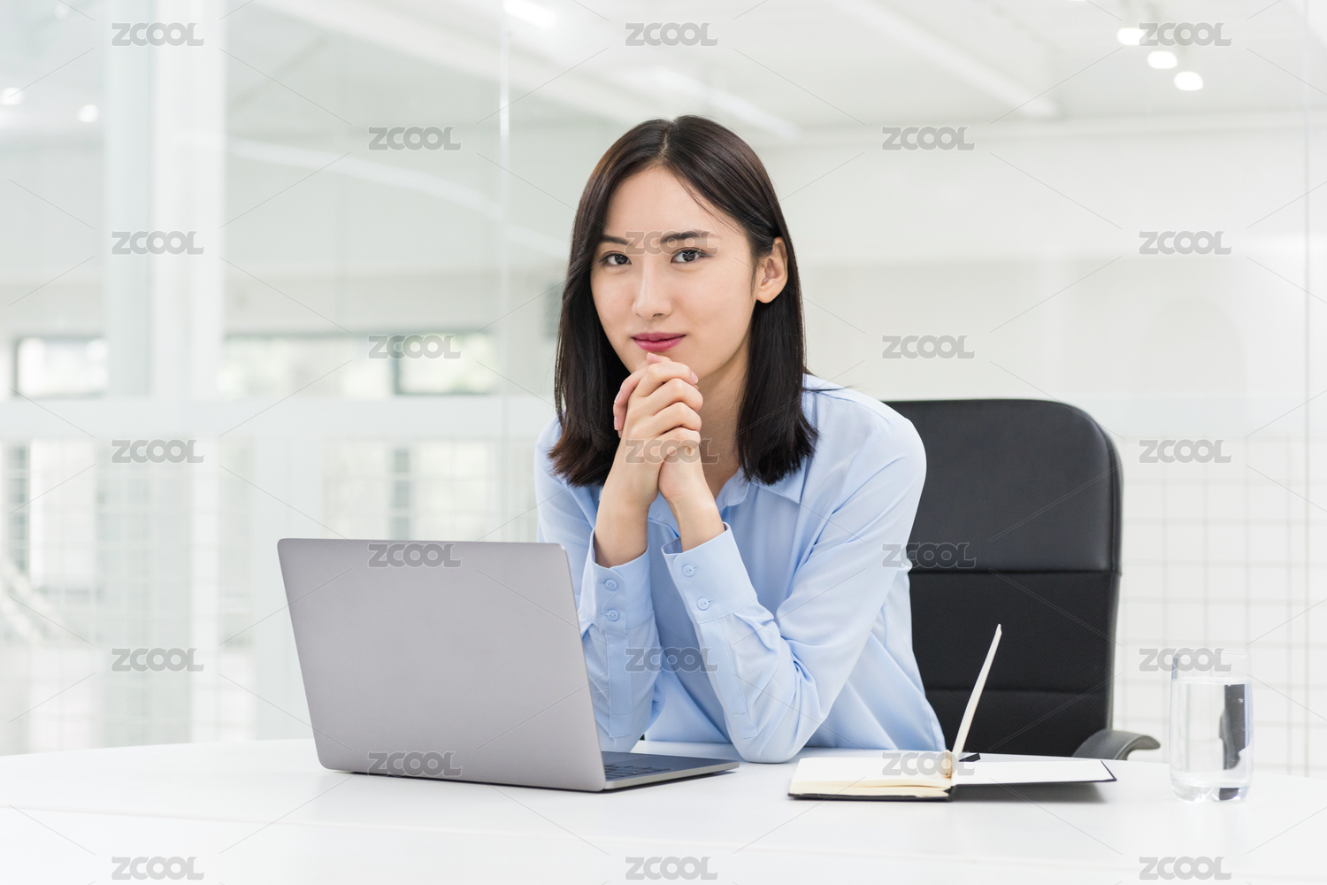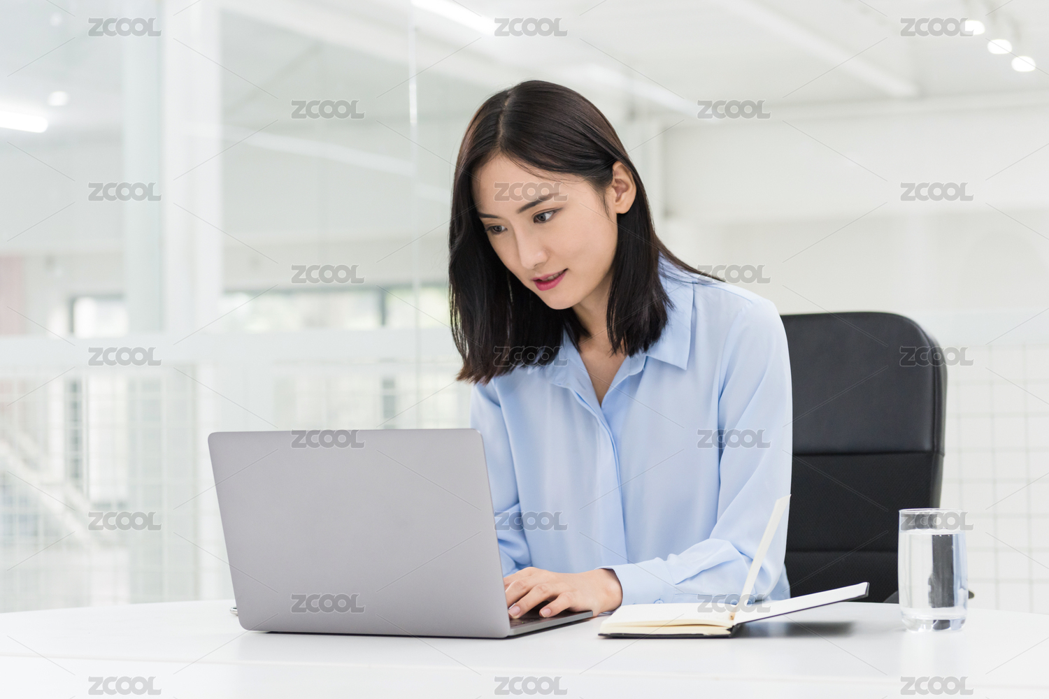 筆記本電腦前的亞洲職業(yè)女性,現(xiàn)代辦公場景
