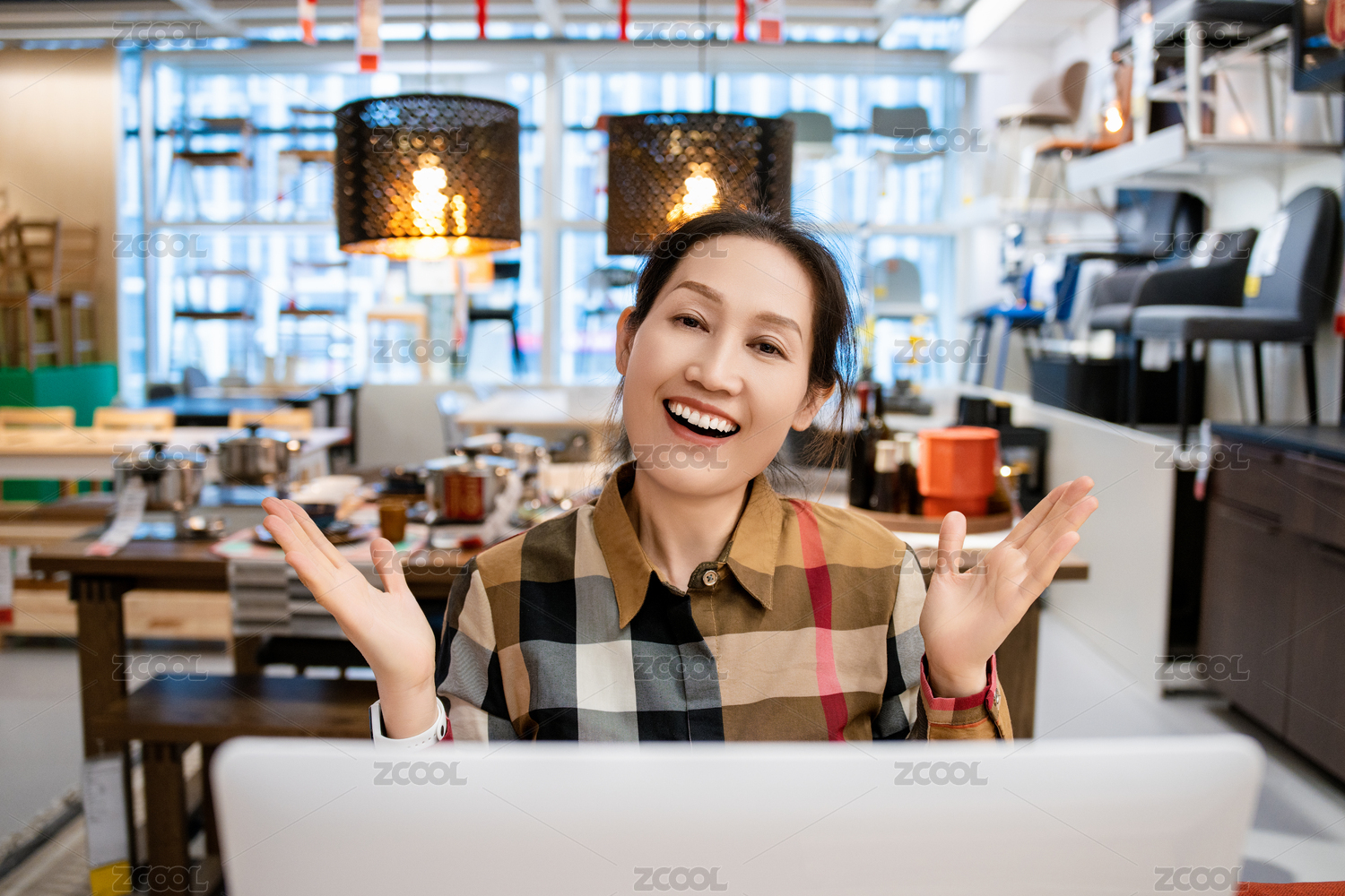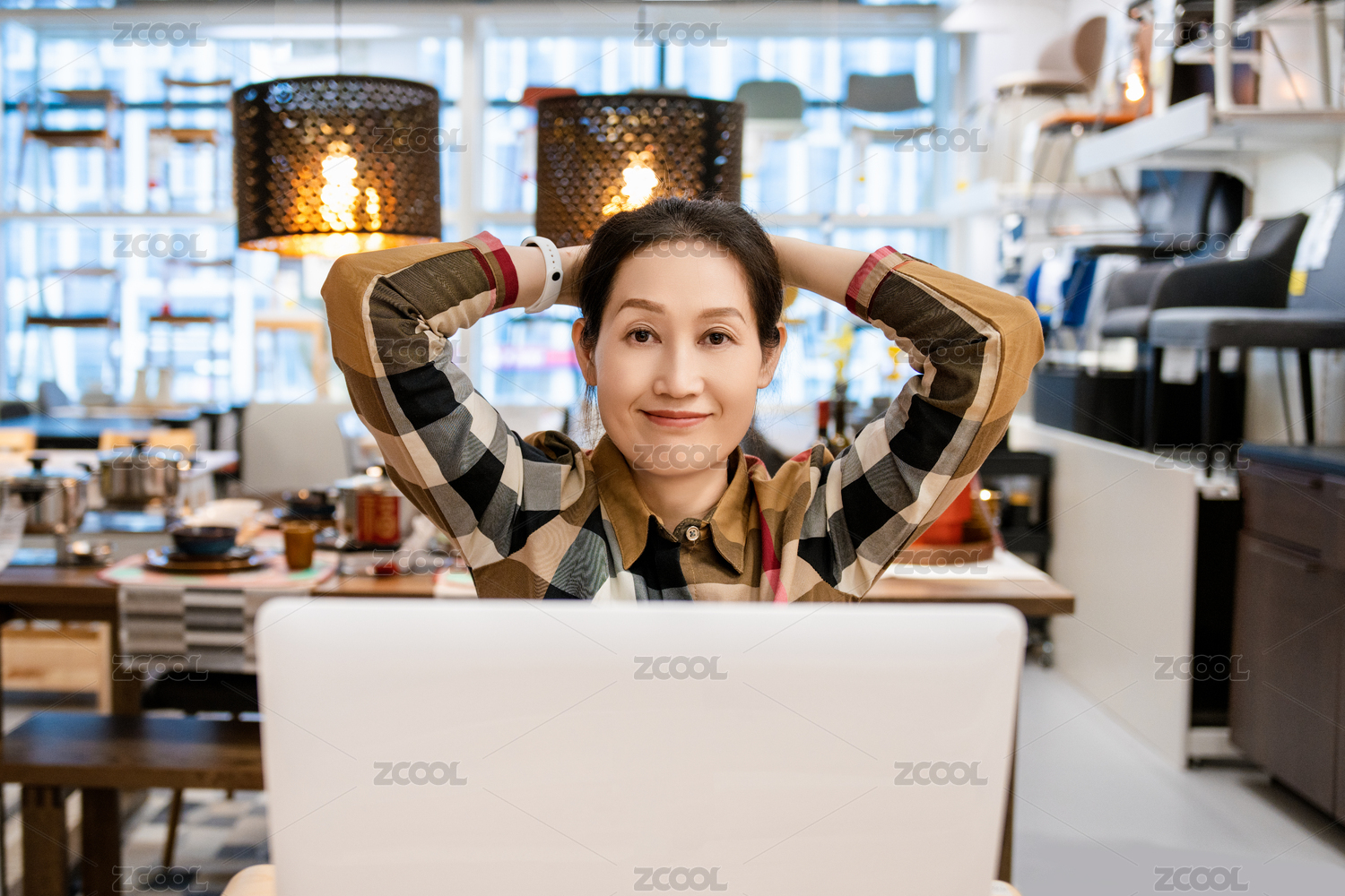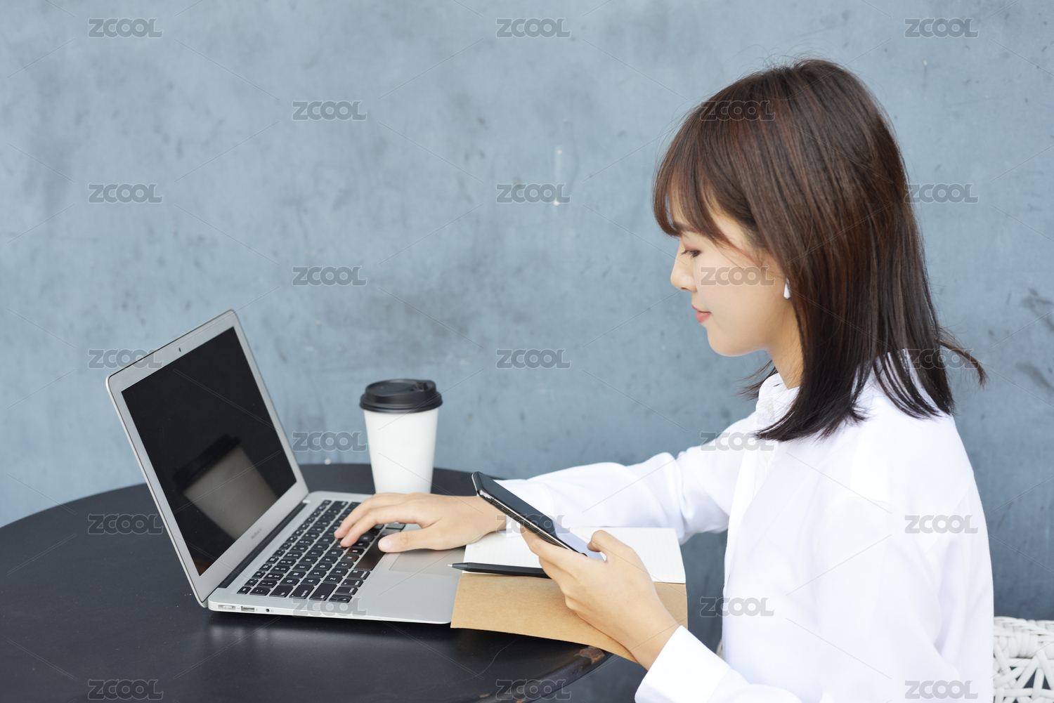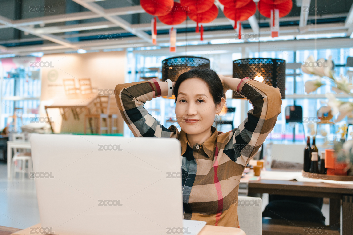 筆記本電腦前的亞洲職業(yè)女性,現(xiàn)代辦公場景