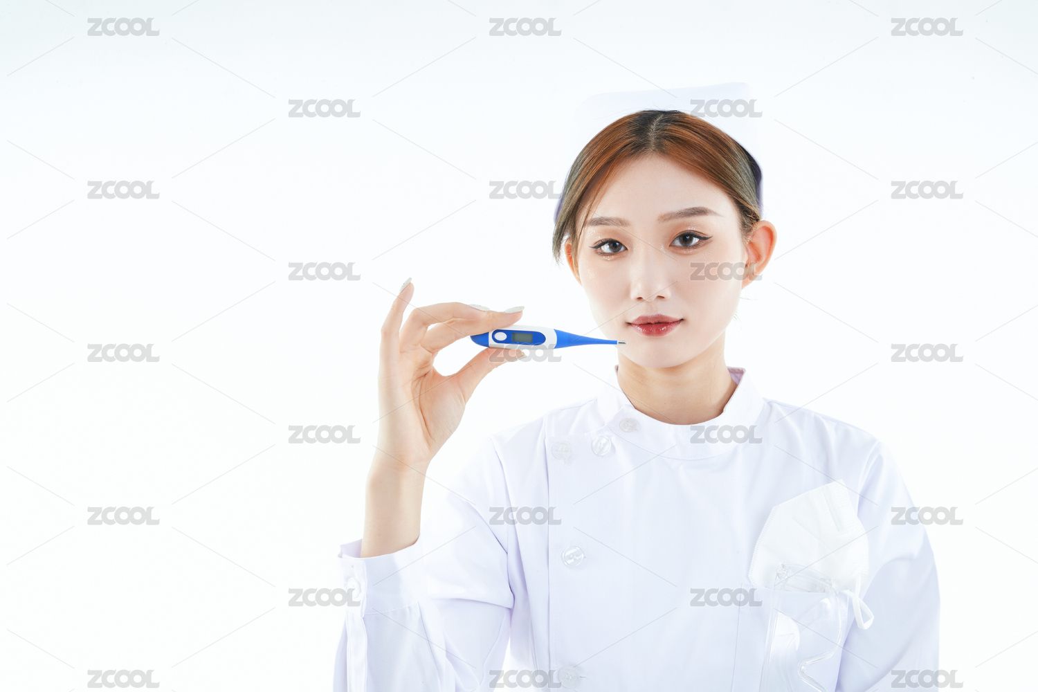 手持溫度計的白衣女性醫(yī)護(hù)人員