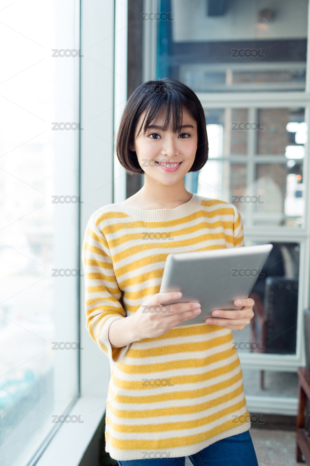 年輕女性使用平板電腦
