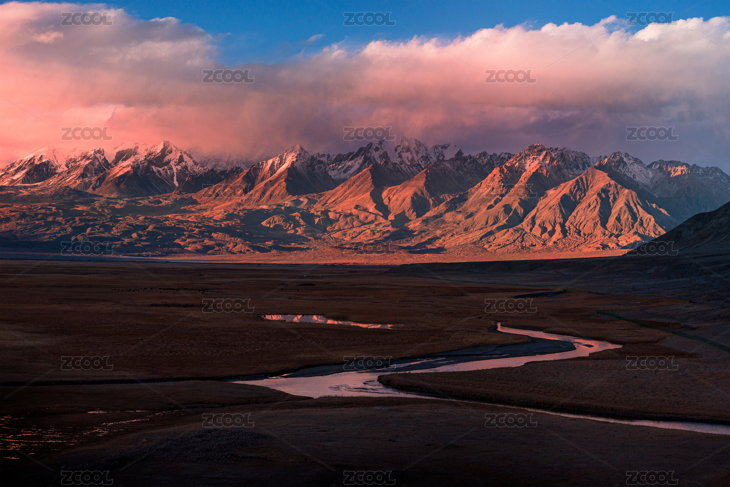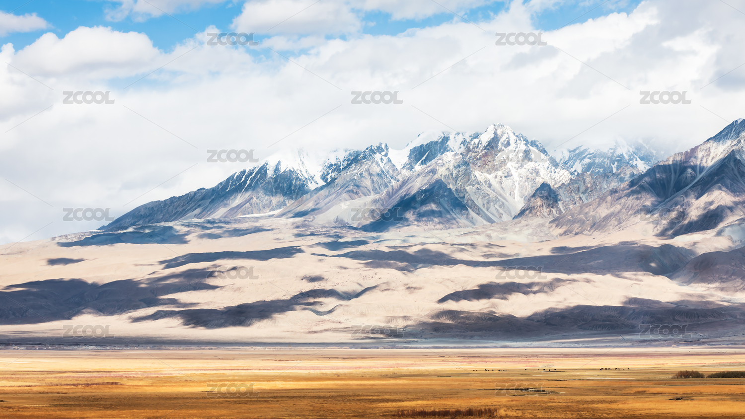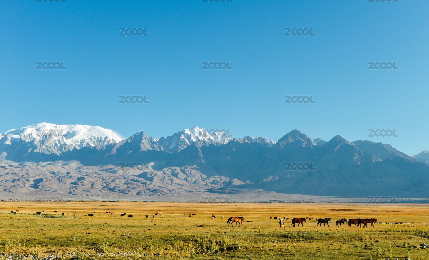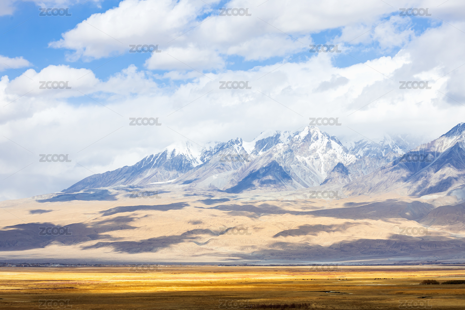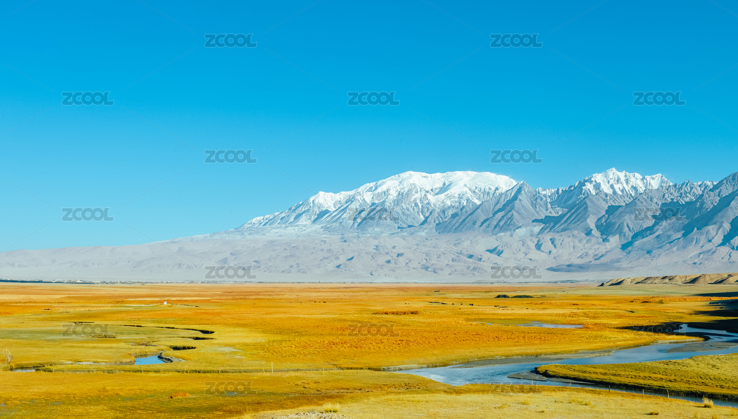 中國新疆帕米爾高原的塔合曼濕地雪山秋景