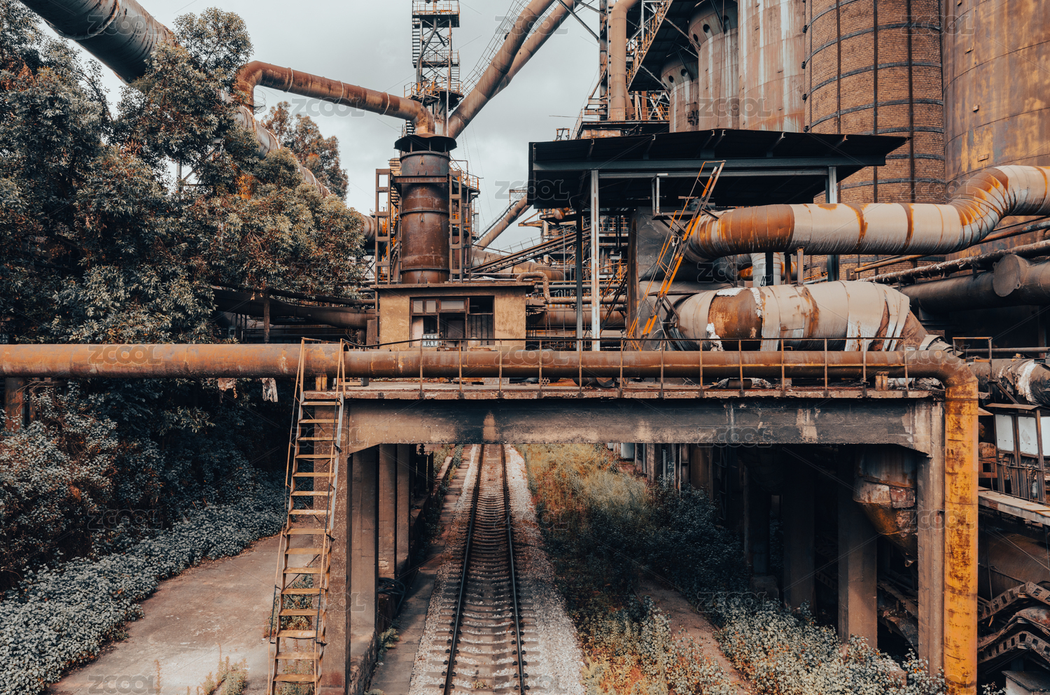中國(guó)重慶市廢棄的重慶鋼鐵廠遺存