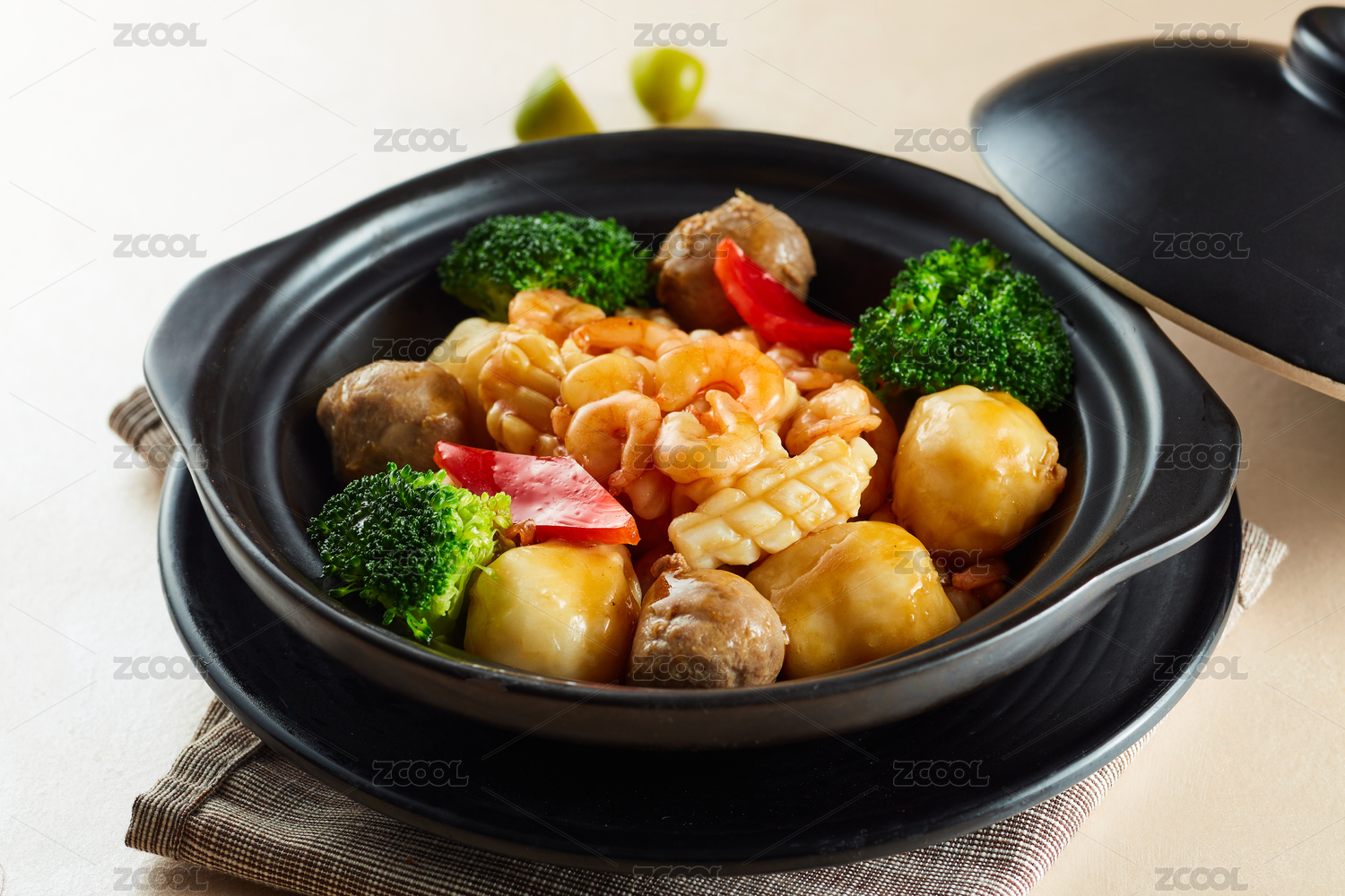 在黑色砂鍋里的海鮮丸子