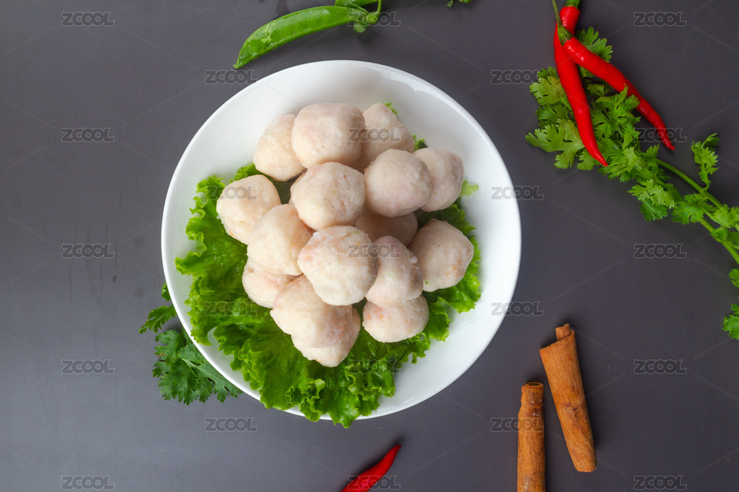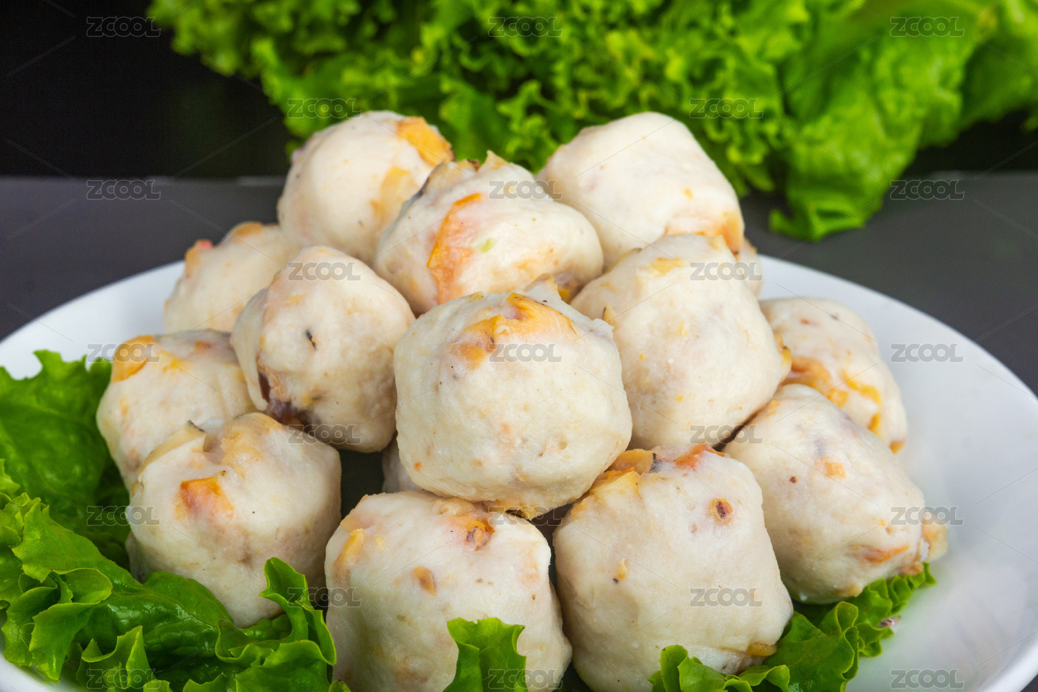 白盤子里的海鮮丸子