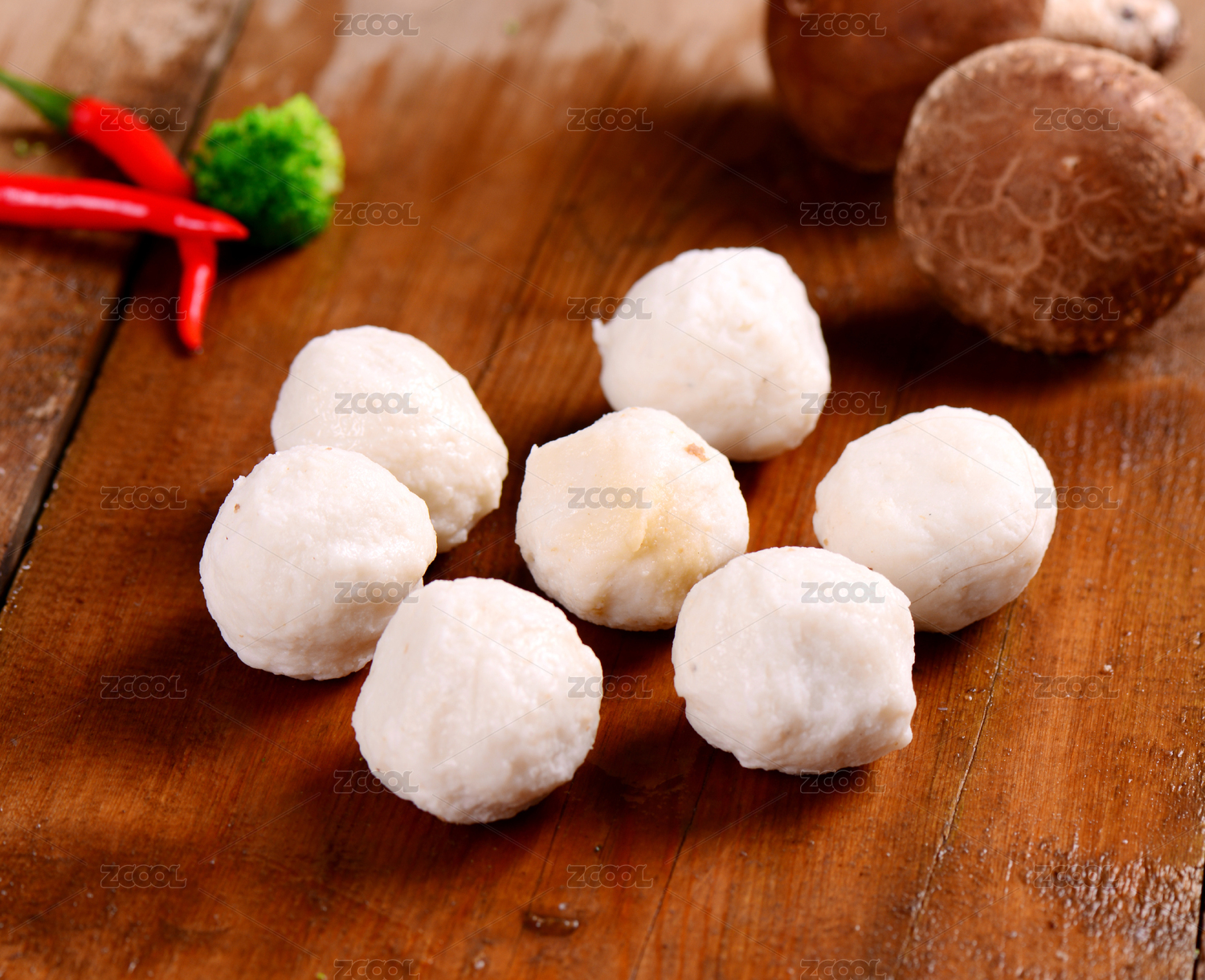 棕色木桌背景下的新鮮魚丸