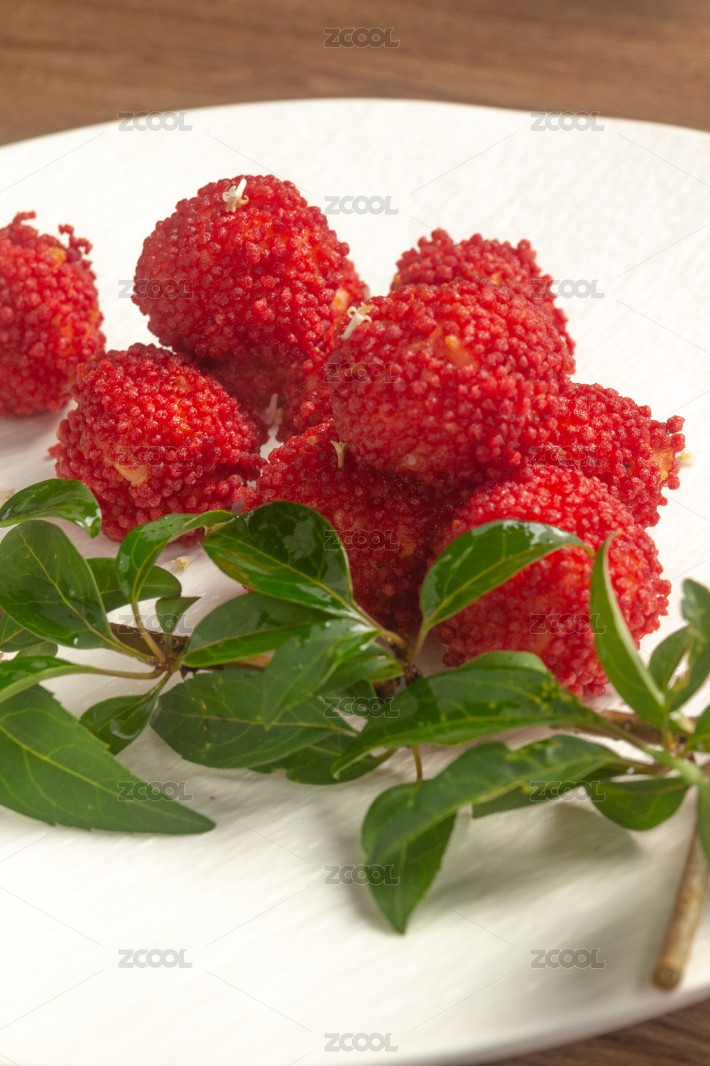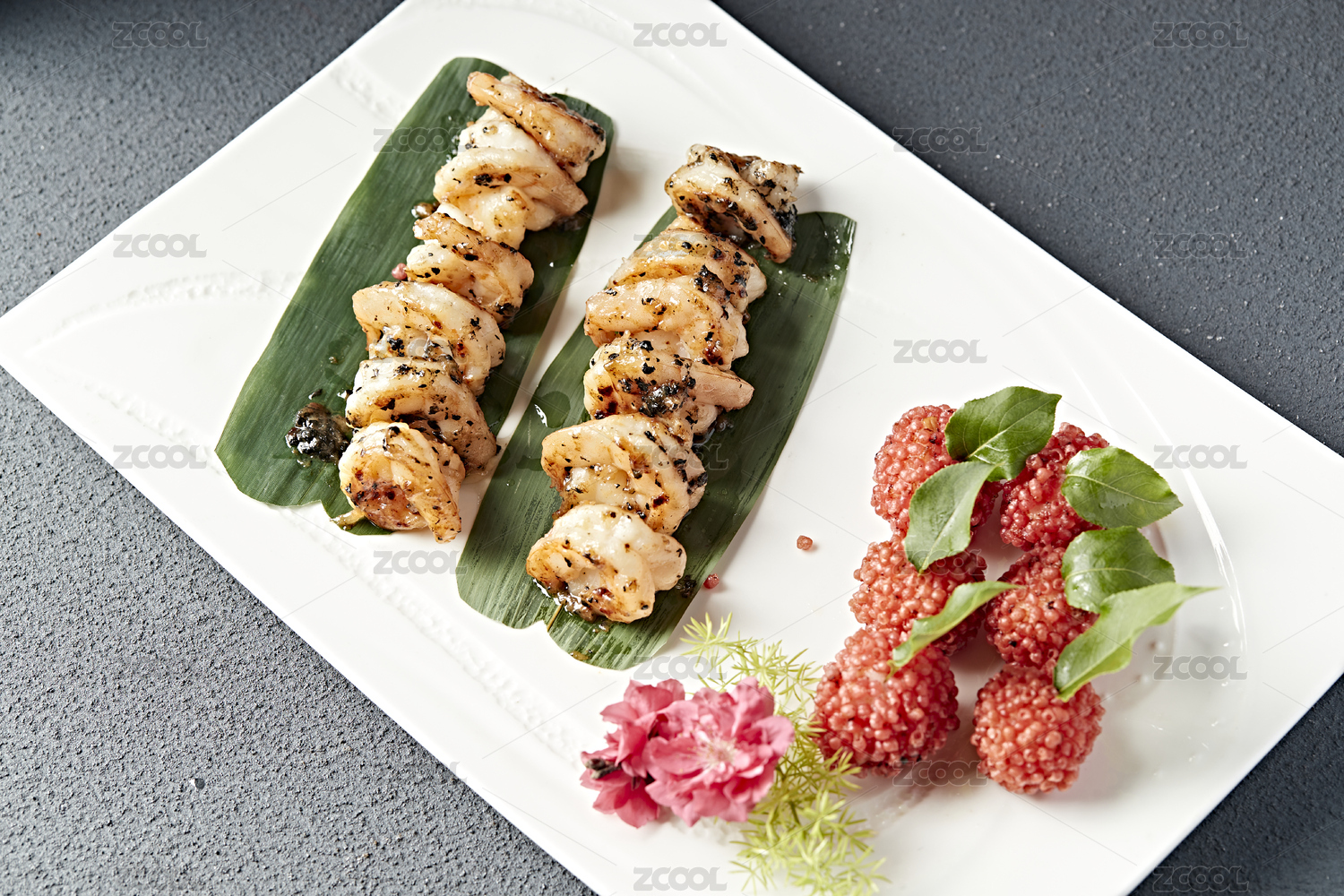在竹盤子里的荔枝蝦球