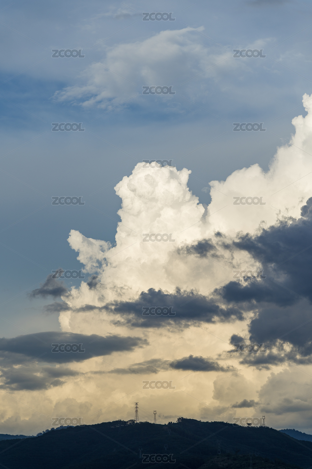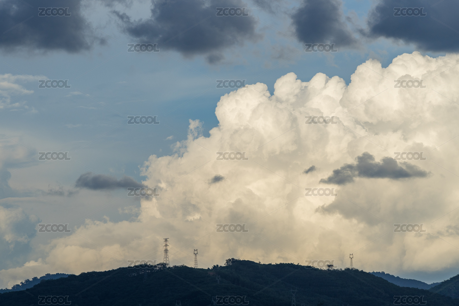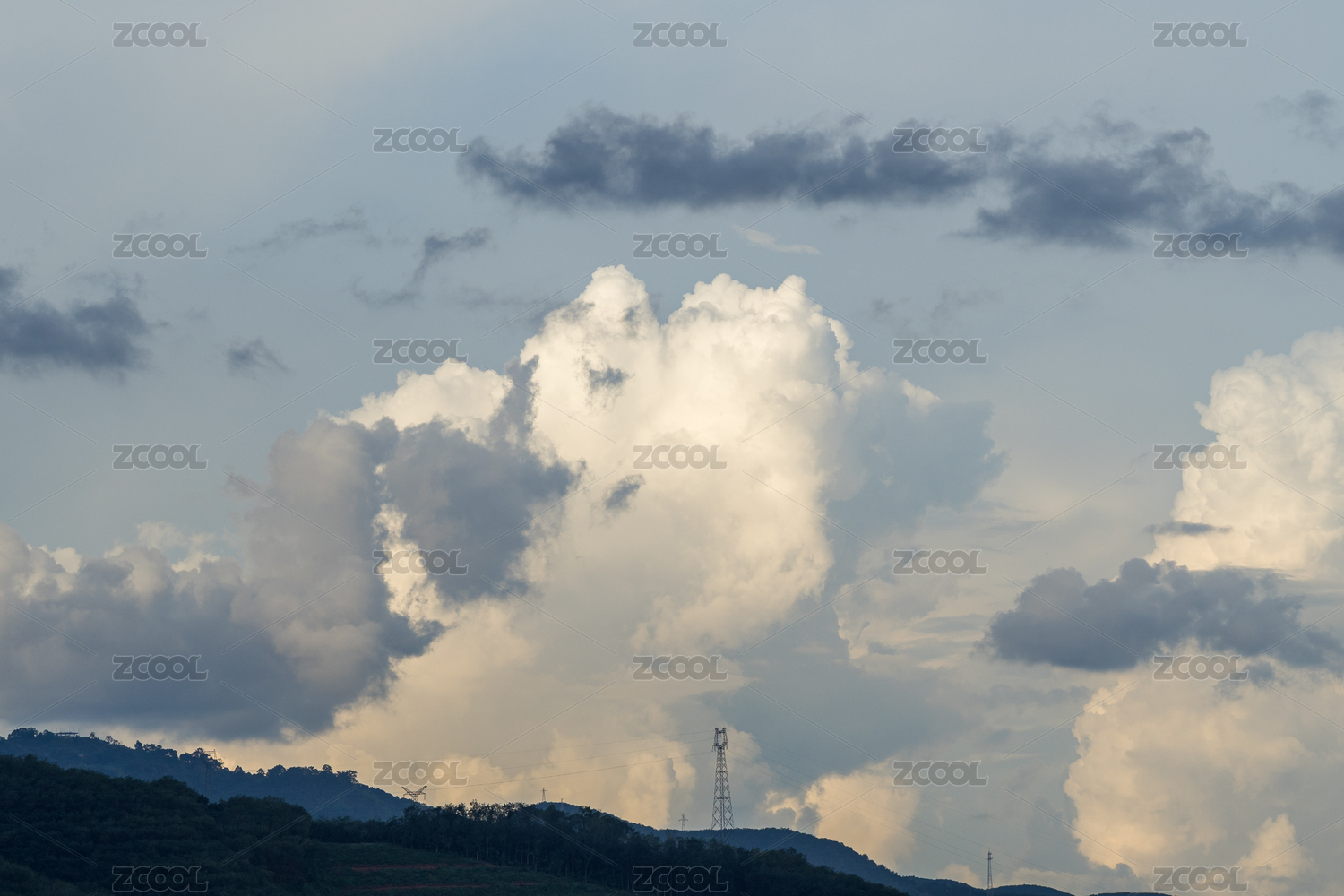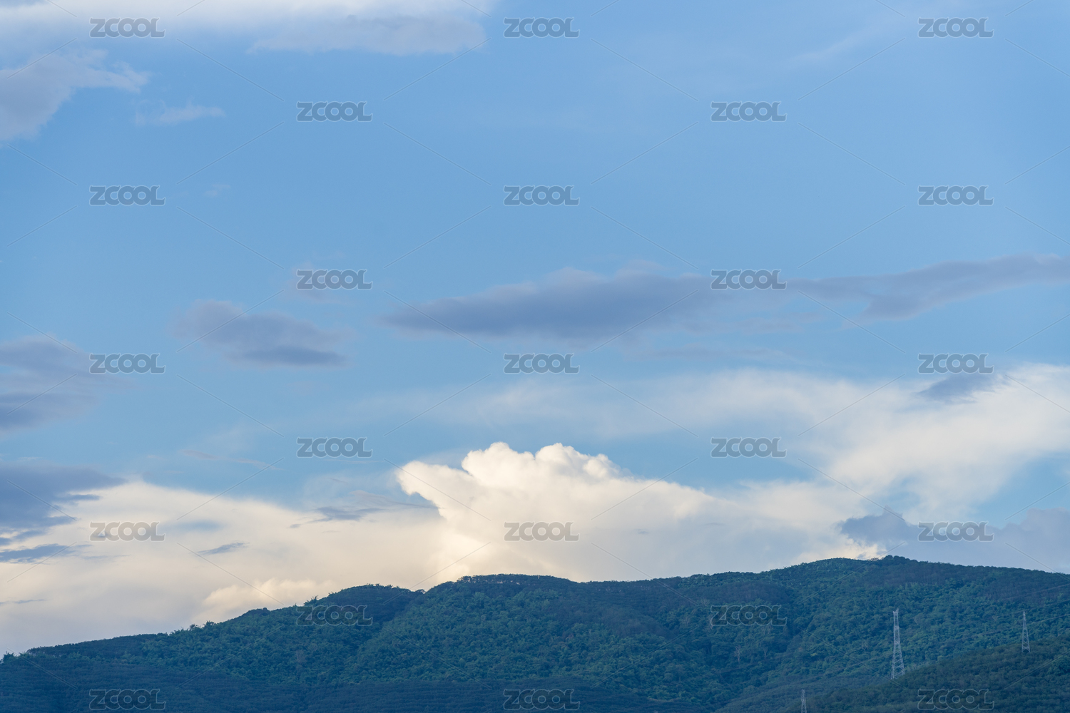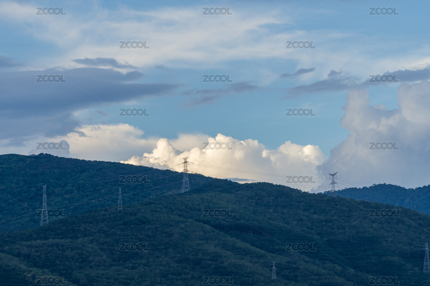 山間電力塔與藍(lán)天白云