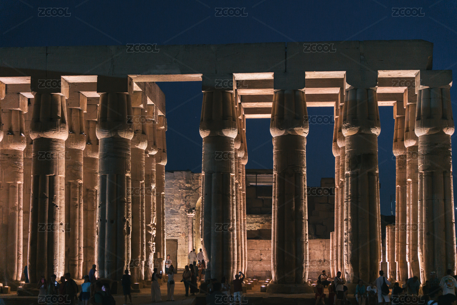 古埃及盧克索神廟廊柱殿夜景