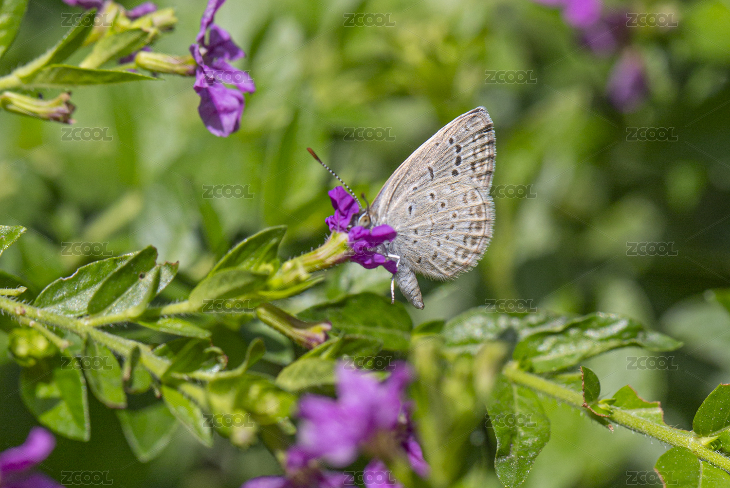 一只酢漿灰蝶停在紫色花朵枝頭
