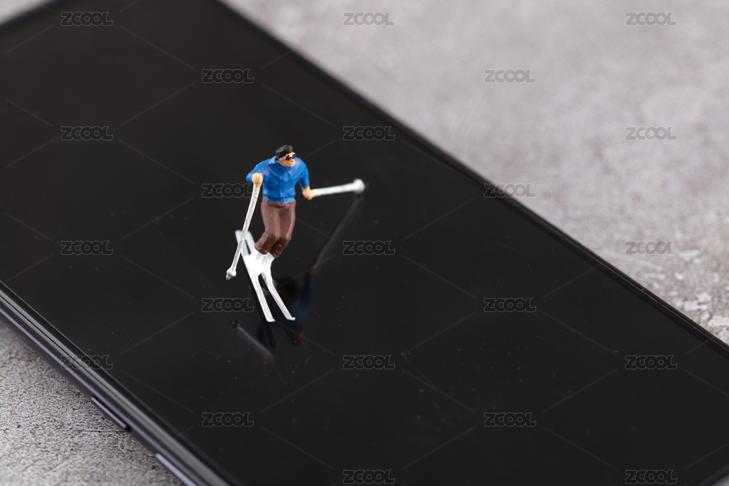 微縮創(chuàng)意手機(jī)上暢游的滑雪者