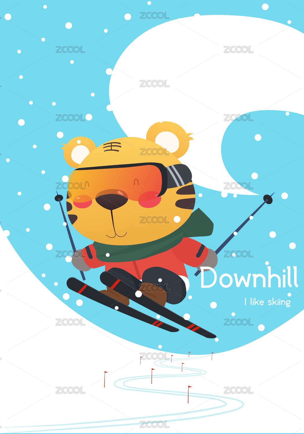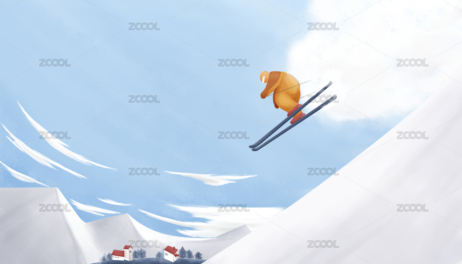 運(yùn)動(dòng)國潮比賽競技體育在斜坡上滑雪者